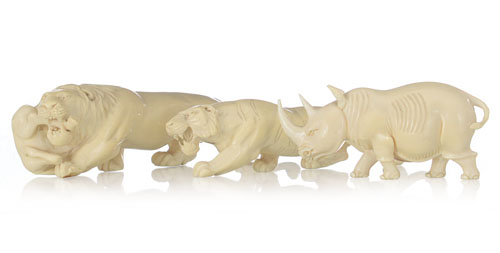 Lot 472 | AVORIO TRE SCULTURE IN AVORIO, INIZIO XX SECOLO, raffiguranti un leone con...
