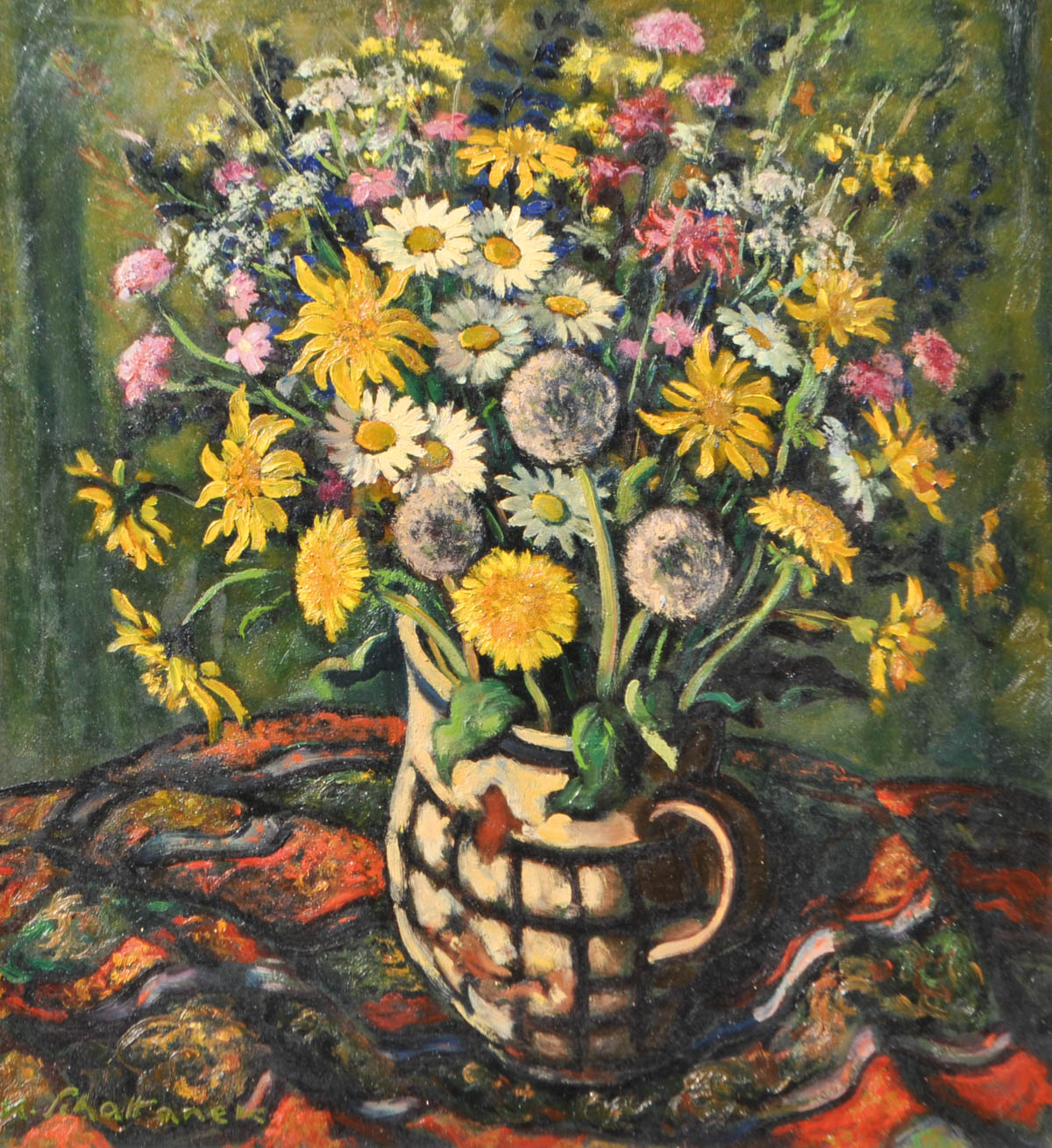 Karl Schattanek (Wien/Vienna 1890 - Innsbruck 1965) Fiori di campo in vaso;Olio su cartone, 53 x 49 cm, in cornice