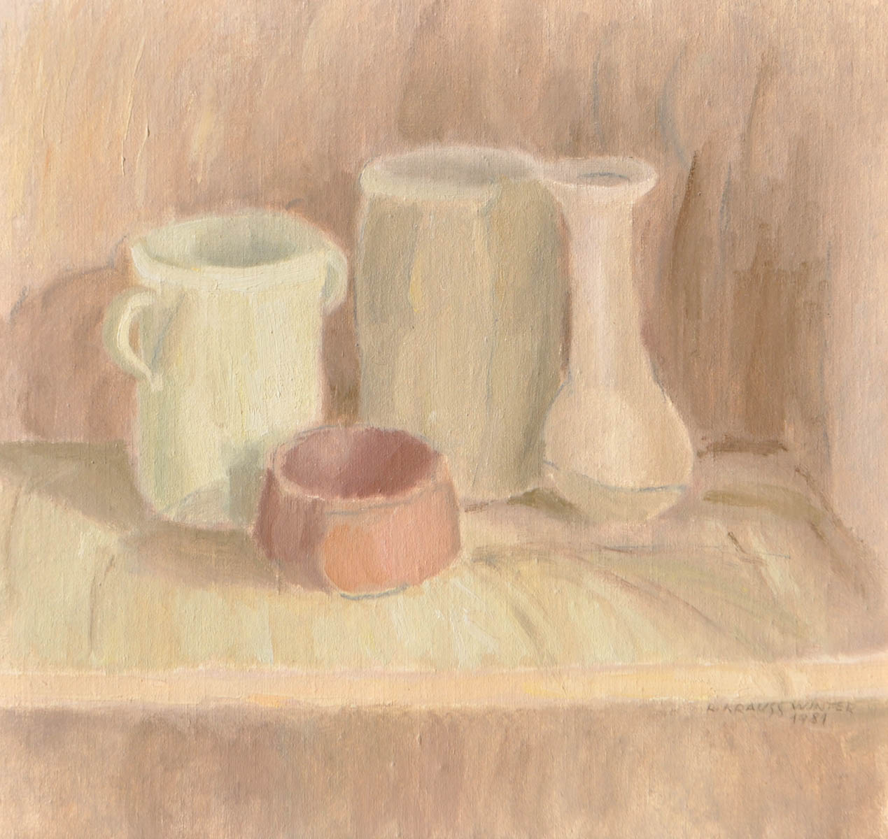 Renate Krauss (Innsbruck 1935 - Kematen 2019) Natura morta;Olio su tela su lastra, 25 x 27 cm, in cornice