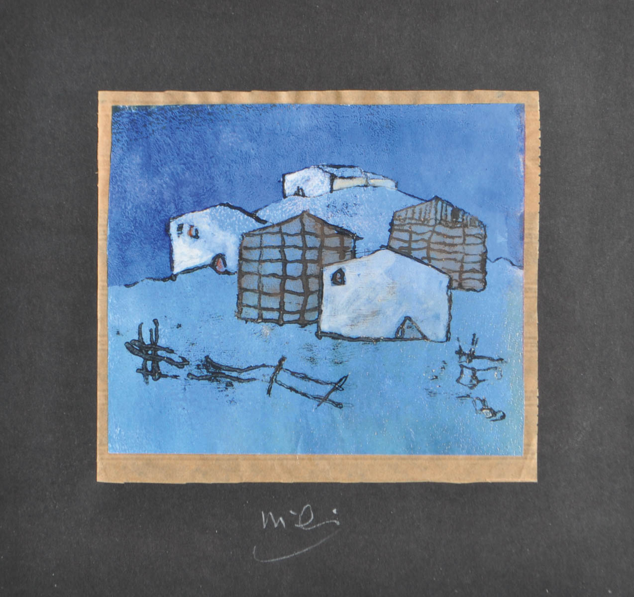 Mili Schmalzl (St. Ulrich in Grvden/Ortisei 1912 - 2006) Case nella neve;Xilografia colorata, 16 x 19 cm