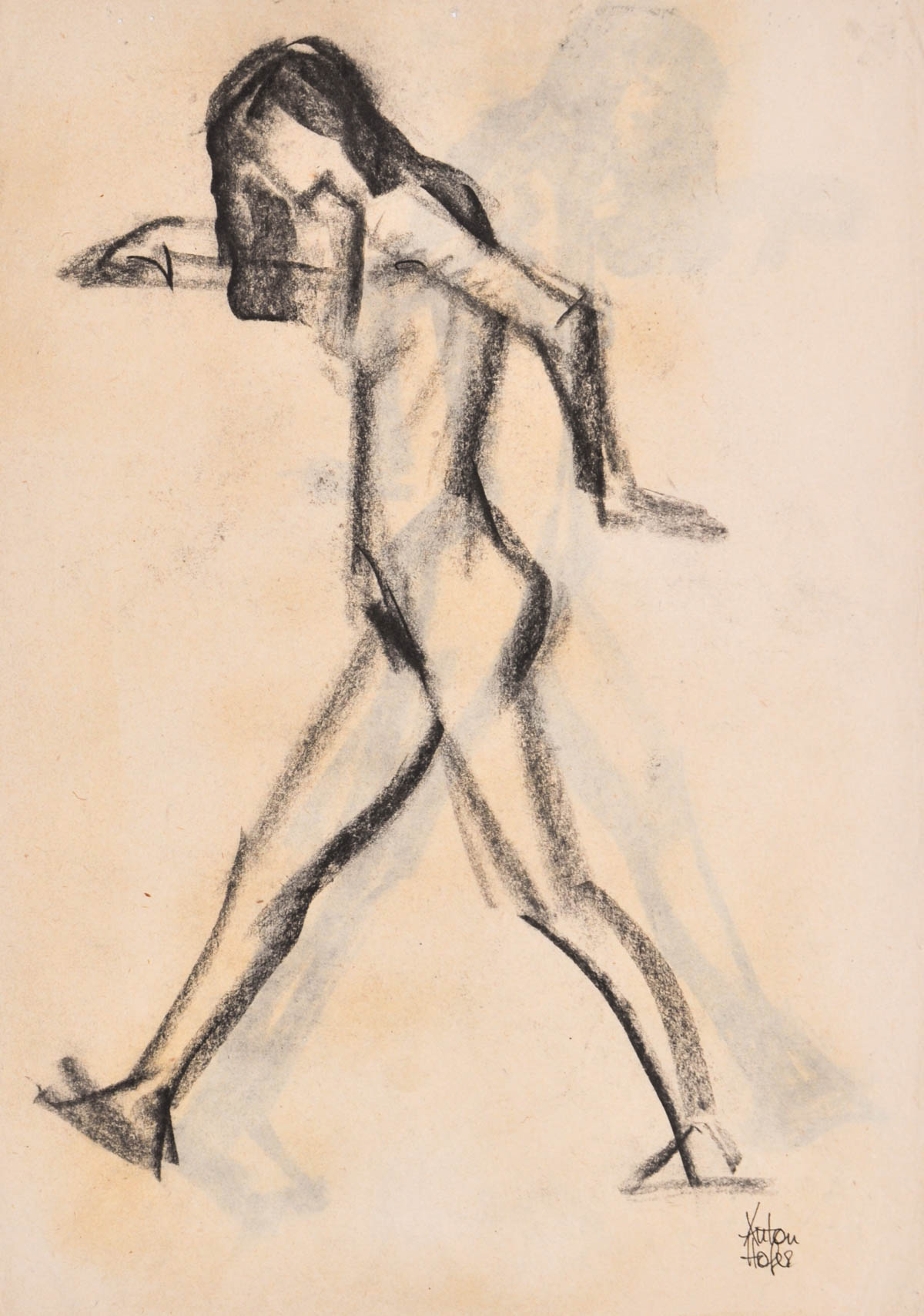 Anton Hofer (Bozen/Bolzano 1888 - 1979) Nudo femminile che incede;Sul retro:...