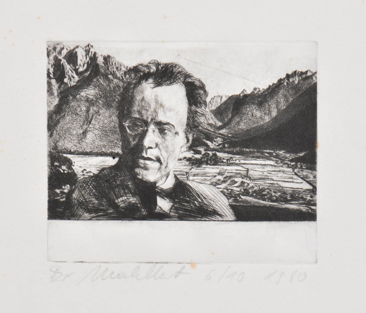 Ivo Mahlknecht (Meran/Merano 1955, lebt in Meran/vive a Merano) Gustav Mahler - Vista nella Val di Landro, 1980;Acquaforte, 10,7 x 13,1 cm
