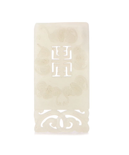 PLACCA IN GIADA BIANCA TRAFORATA, CINA, XIX SECOLO, con decori stilizzati a rilievo e a traforo; probabile restauro.