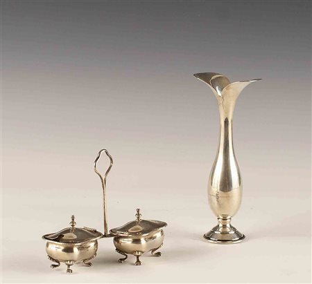Lotto composto da una salierina ed un vasetto entrambi in argento, gr. 180...