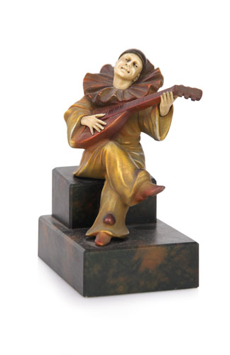 Lot 506 | SCULTORE DEL XIX SECOLO Pierrot suonatoreMetallo dorato, patinato e avorio,...