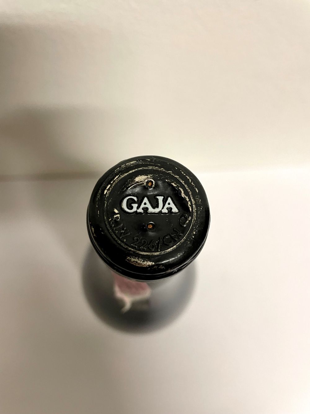 Condition report: etichetta e capsula con segni d'usura del tempo.