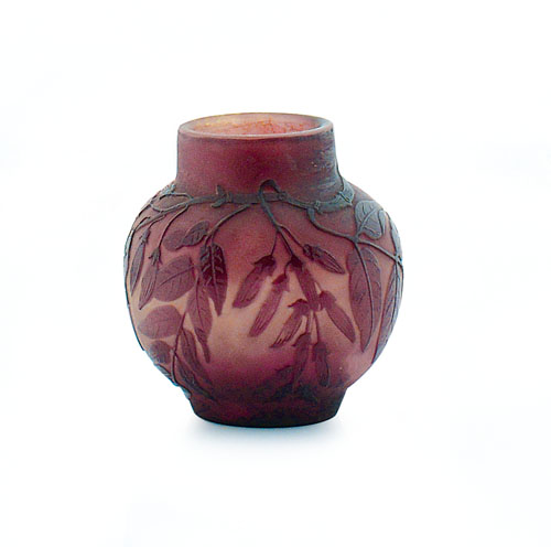 GALLE' VASETTO IN VETRO DOPPIO, GALLE', 1900 CA., globulare con decoro a rami...