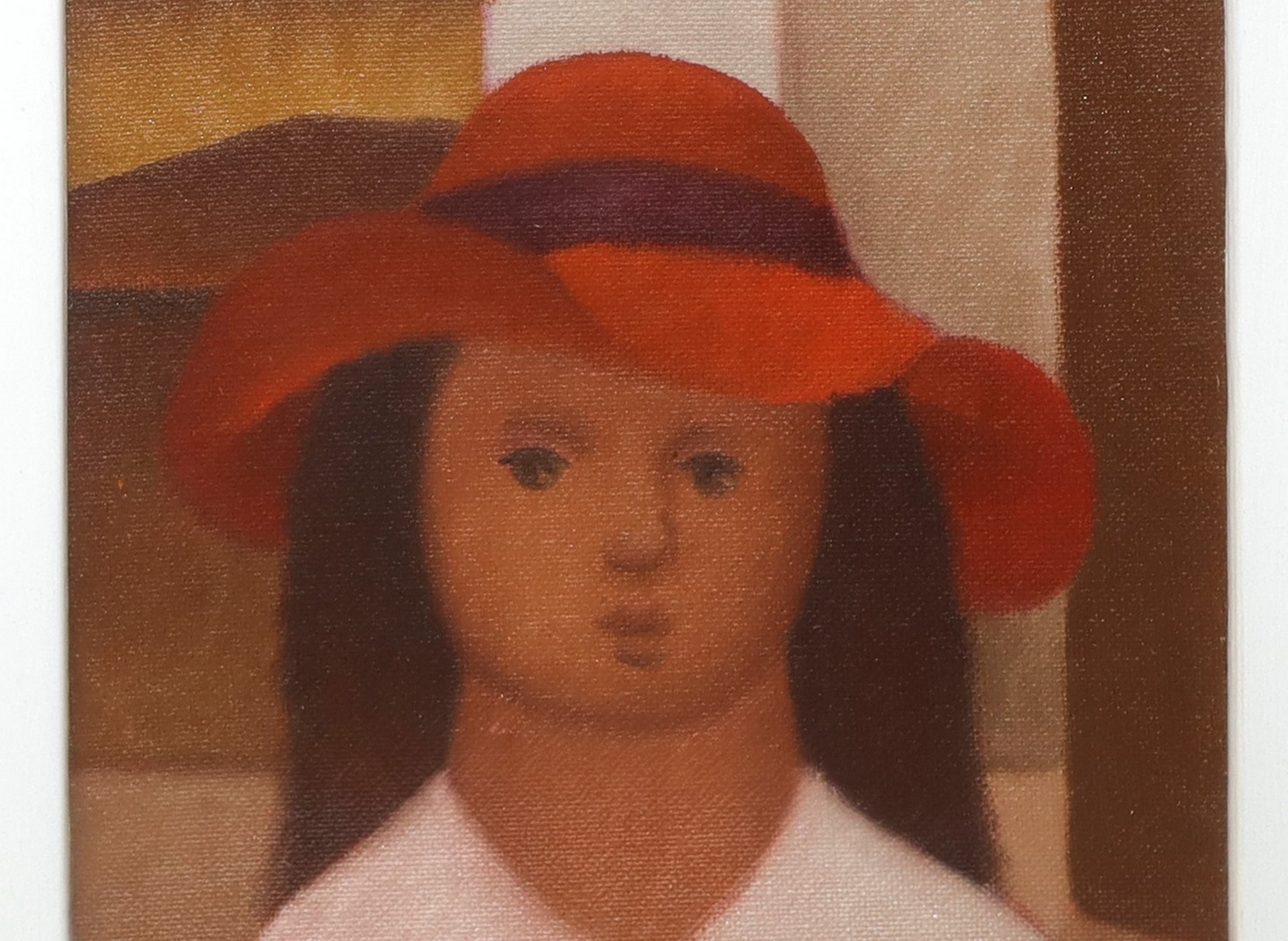 Roberto Masi (Firenze 1940-Firenze 2011) - Bambina con cappello cm 15x20 , in cornice 37x32 Olio su cartone telato Firmato in basso a sinistra e sul retro. Certificazione Galleria Renzo Spagnoli Arte, N. Arch.12293