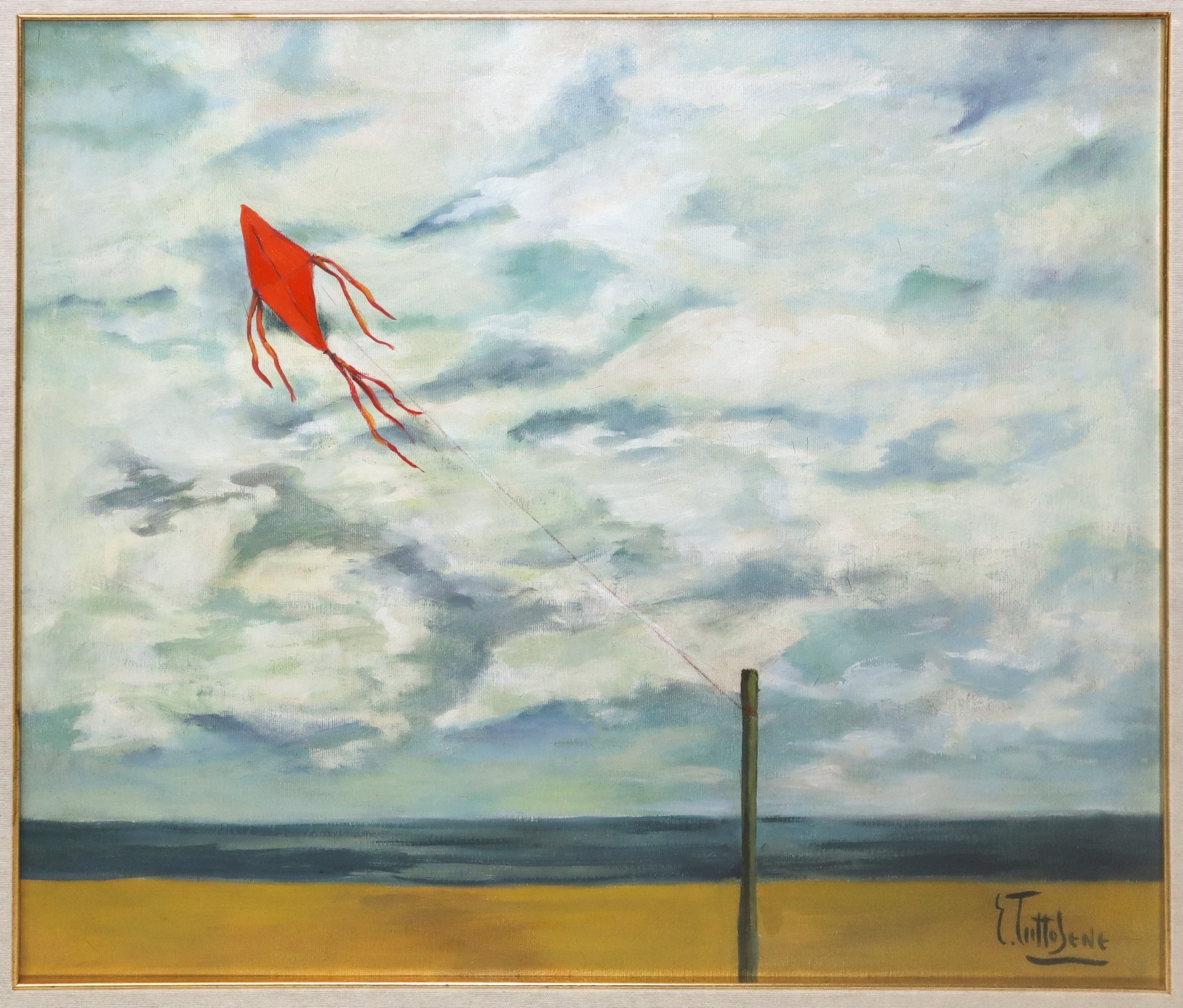 Emilia Centorbi Tuttobene (Catania 1915-Acitrezza 2003) - Volo di aquilone su mare cm h 60 x 70, in cornice 80 x 90 Olio su tela Firmato in basso a destra.