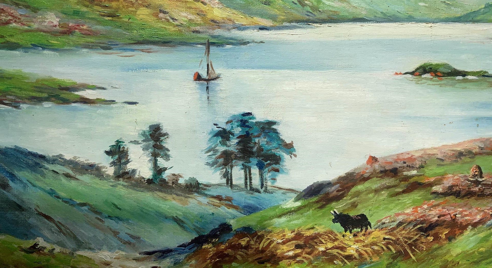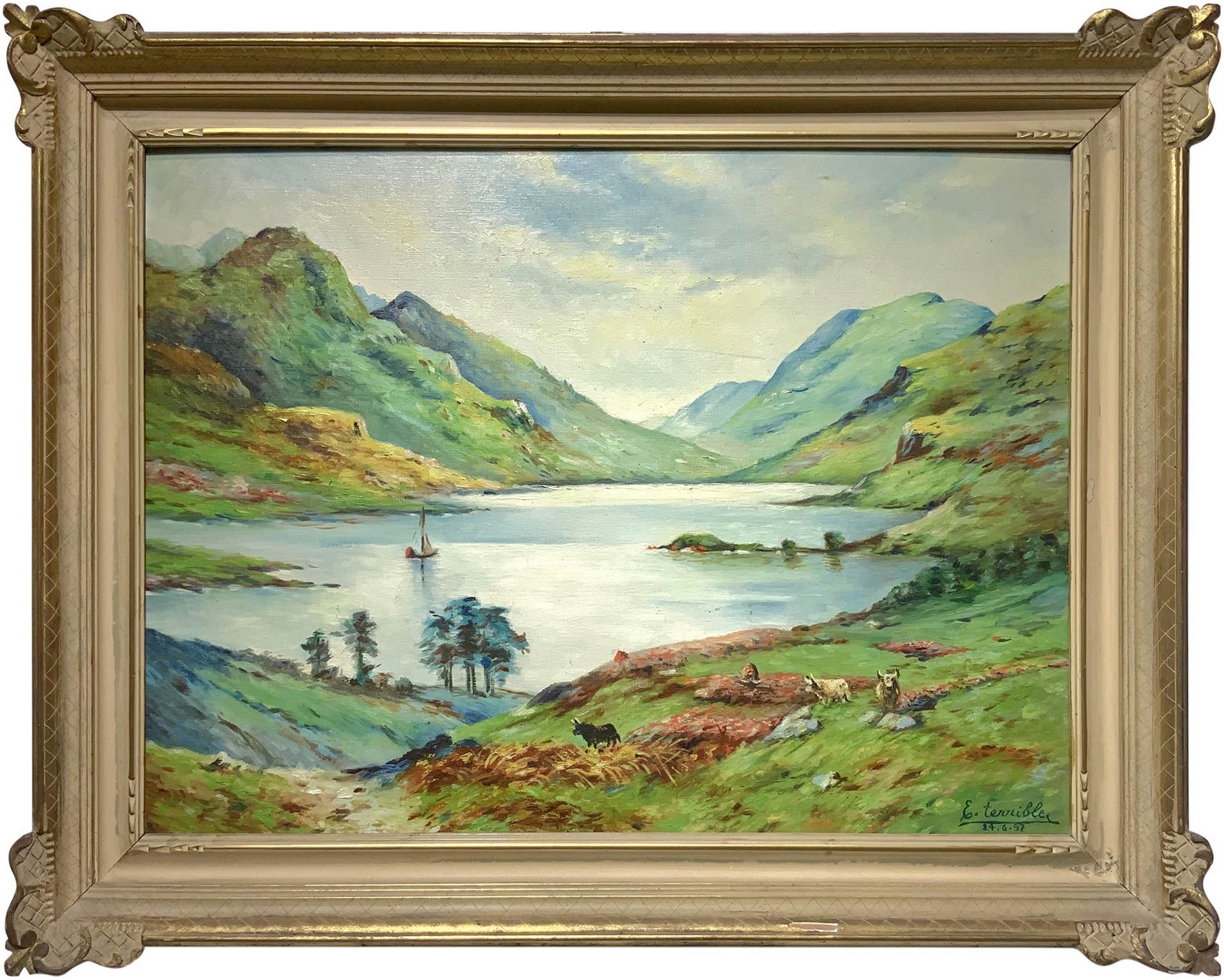 Dipinto raffigurante paesaggio, 20° secolo Cm 50x70 olio su tela Firmato Terribile e datato 24/6/57 in basso a destra