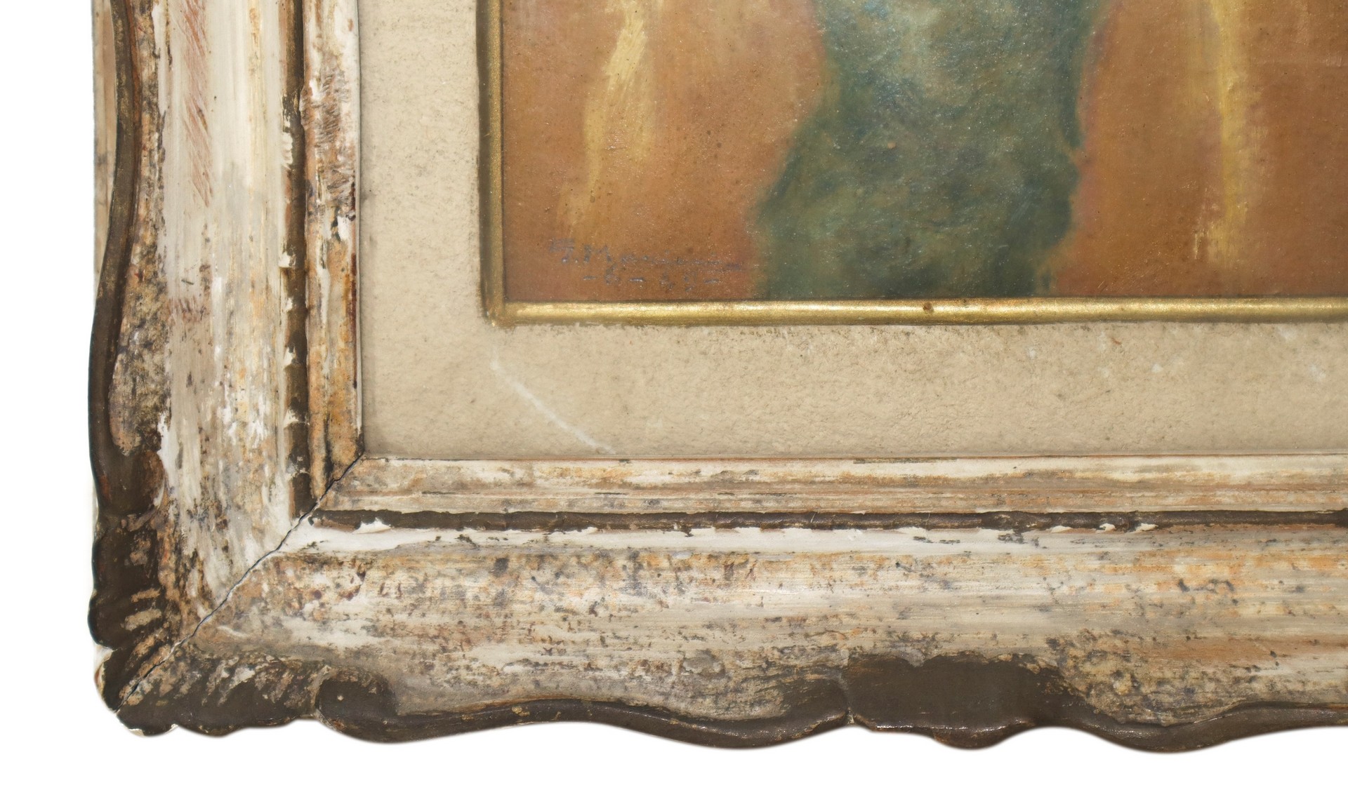 Nudo di donna orientale, 1949 cm 23x13, in cornice 35x26 Olio su cartoncino pressato Firma illegibile in basso a sinistra.