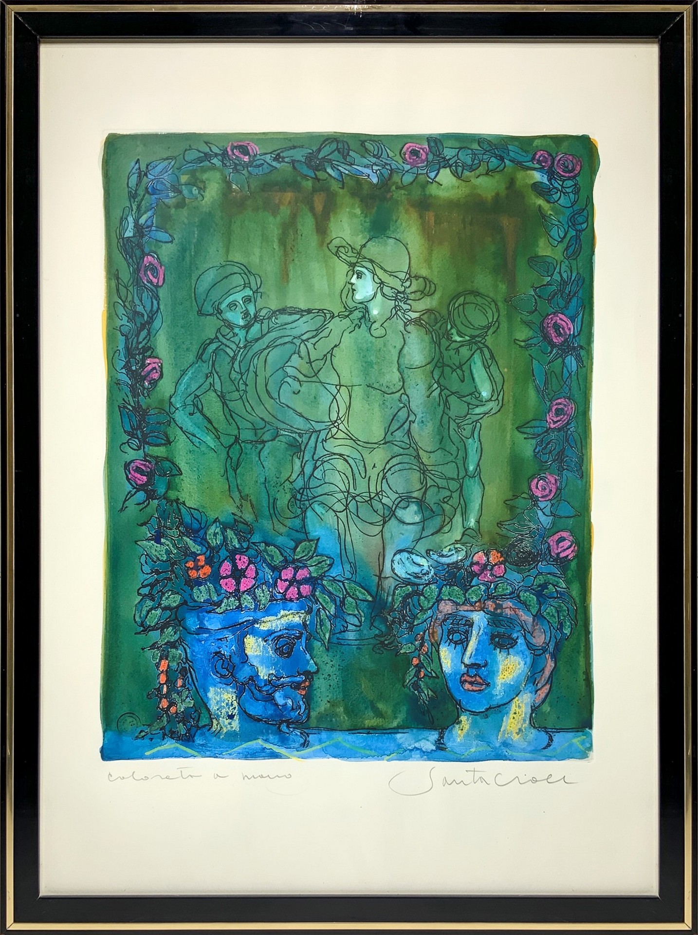 Antonio Santacroce (Rosolini 1945) - Personaggi 70x50 cm Litografia su carta colorata a mano Firmata in basso a destra Santacroce