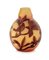 GRANDE VASO IN VETRO DOPPIO, DELATTE NANCY, 1925 CA., globulare con decoro a rami con fiori di magnolia e un passero inciso ad acido nei toni del rosso su fondo miele, firma a cammeo "ADellatte Nancy".