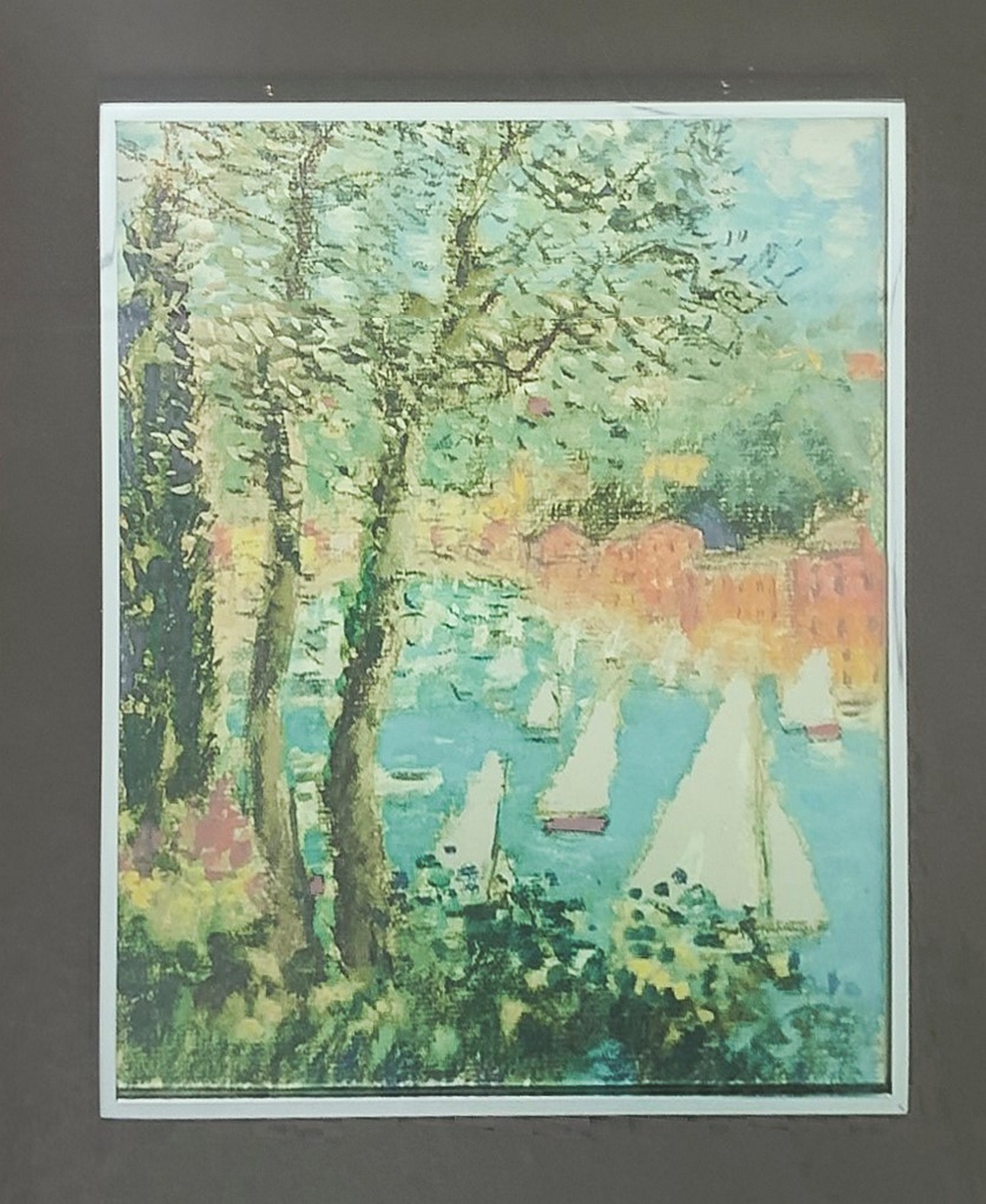 Michele Cascella (Ortona 1892-Milano 1989) - Porto con barche 28x23 cm, in cornice 56x51 cm Litografia su rivestimento in argento 167/500, firmato Michele Cascella.