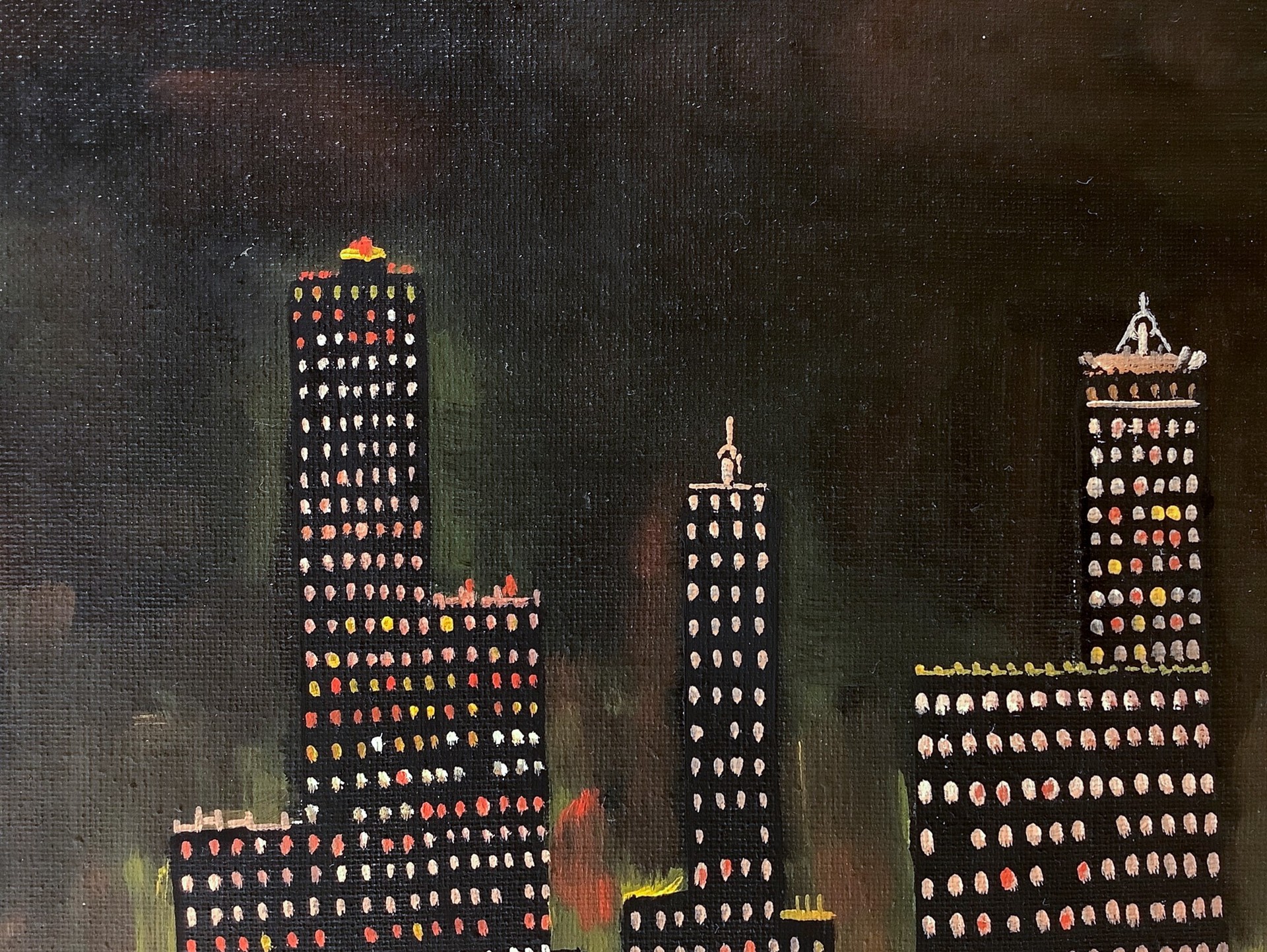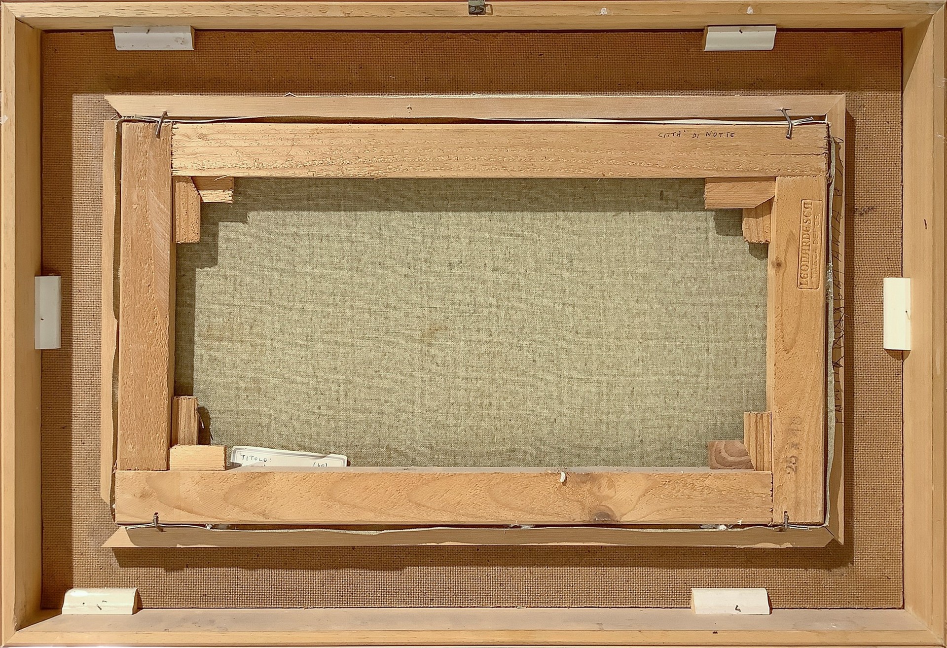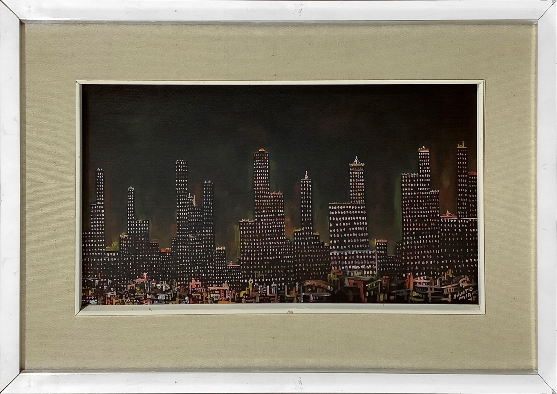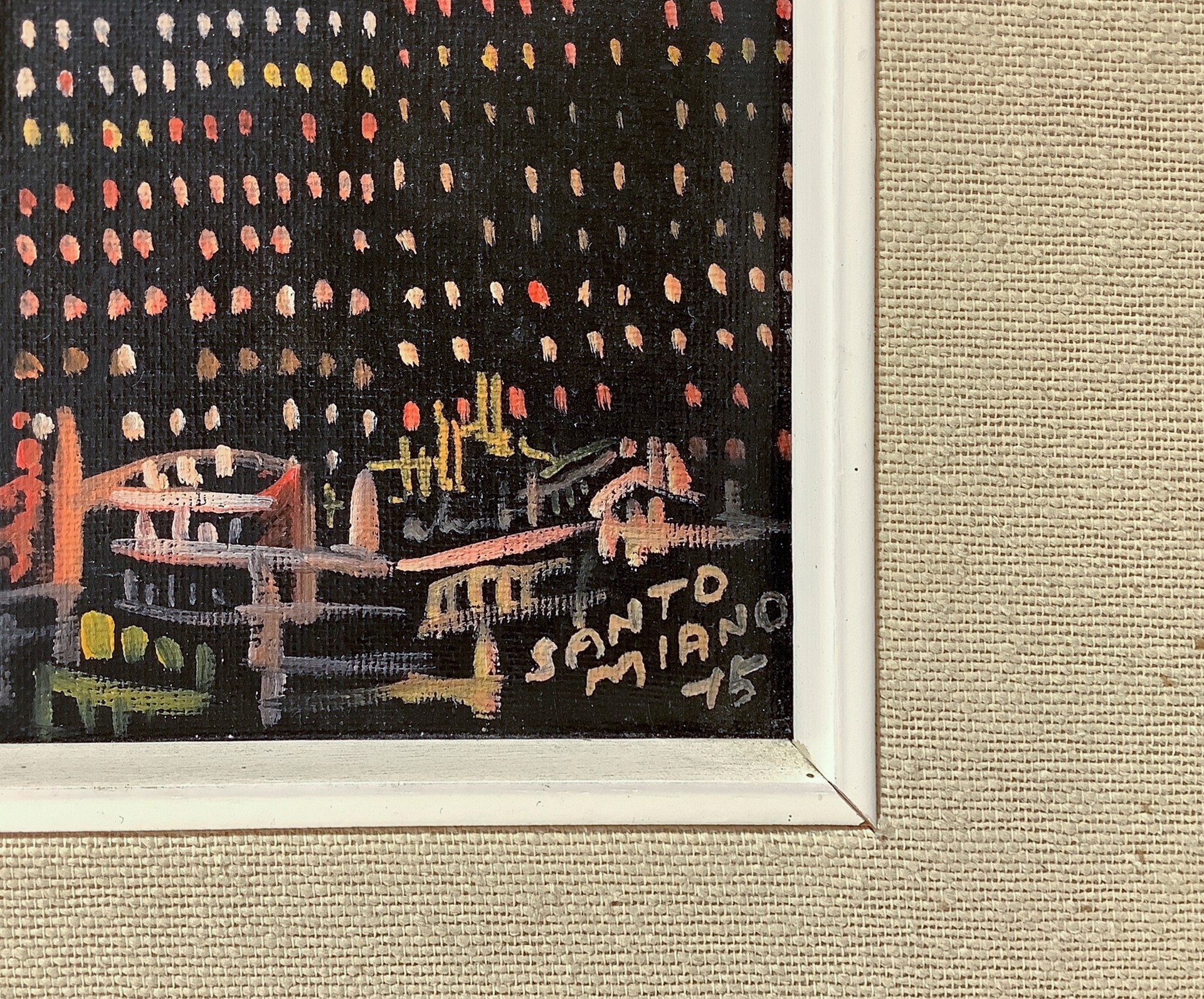 Santo Miano (XX secolo) - New York di notte, 1975 cm 25x45 , in cornice 40x60 Olio su tela Firmato in basso a destra.