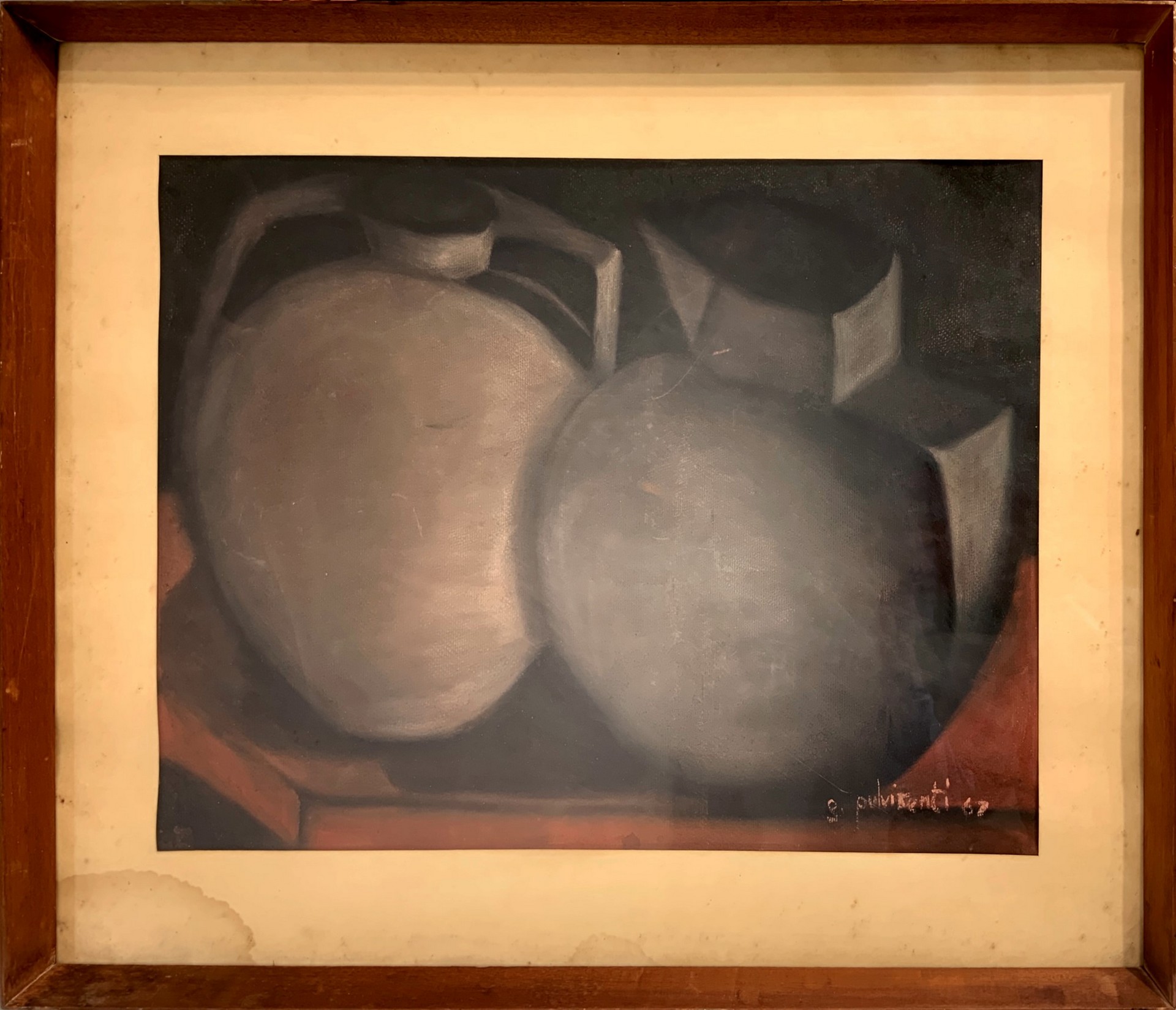 Natura morta di vasi, 1967 Cm 50x70, in cornice cm 70x90 Dipinto a pastello su cartoncino Firmato in basso a destra G. Pulvirenti 67.