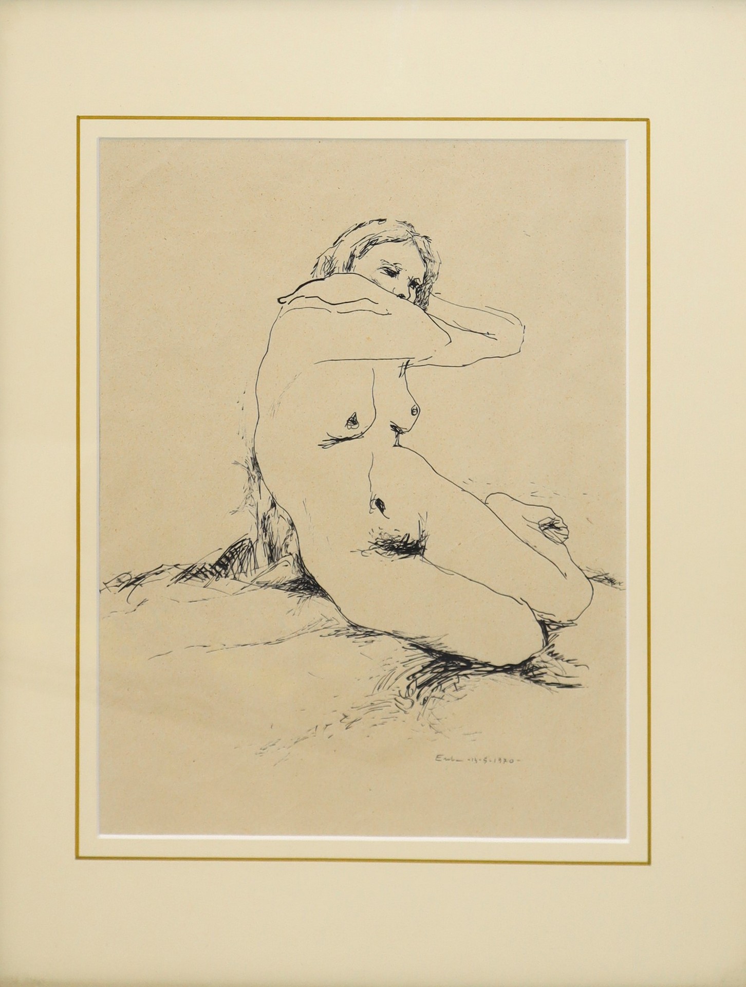 Nudo di donna cm 28 x cm 22; in cornice cm 55 x cm 45 China su carta Firmato e datato 14-05-1970 in basso a destra