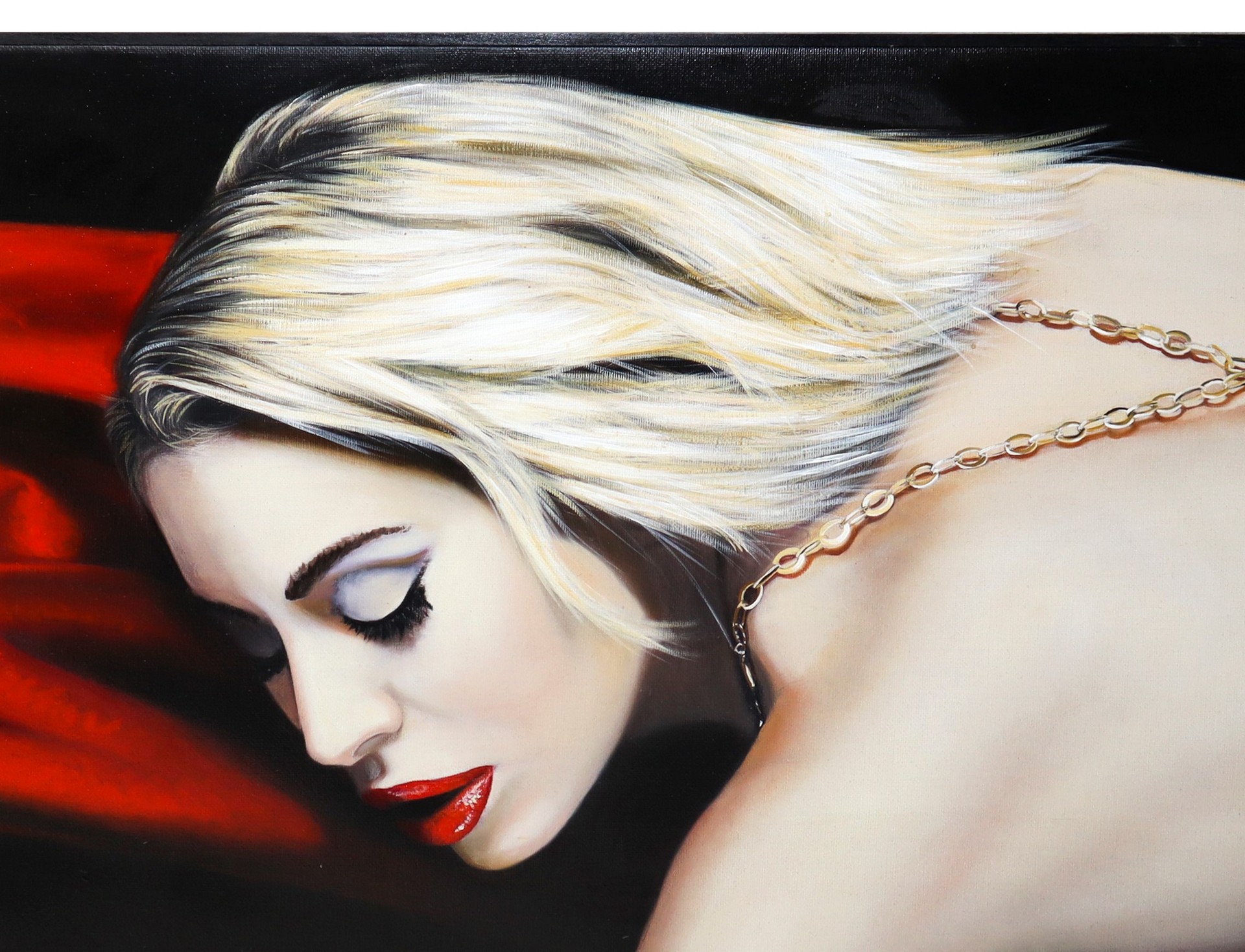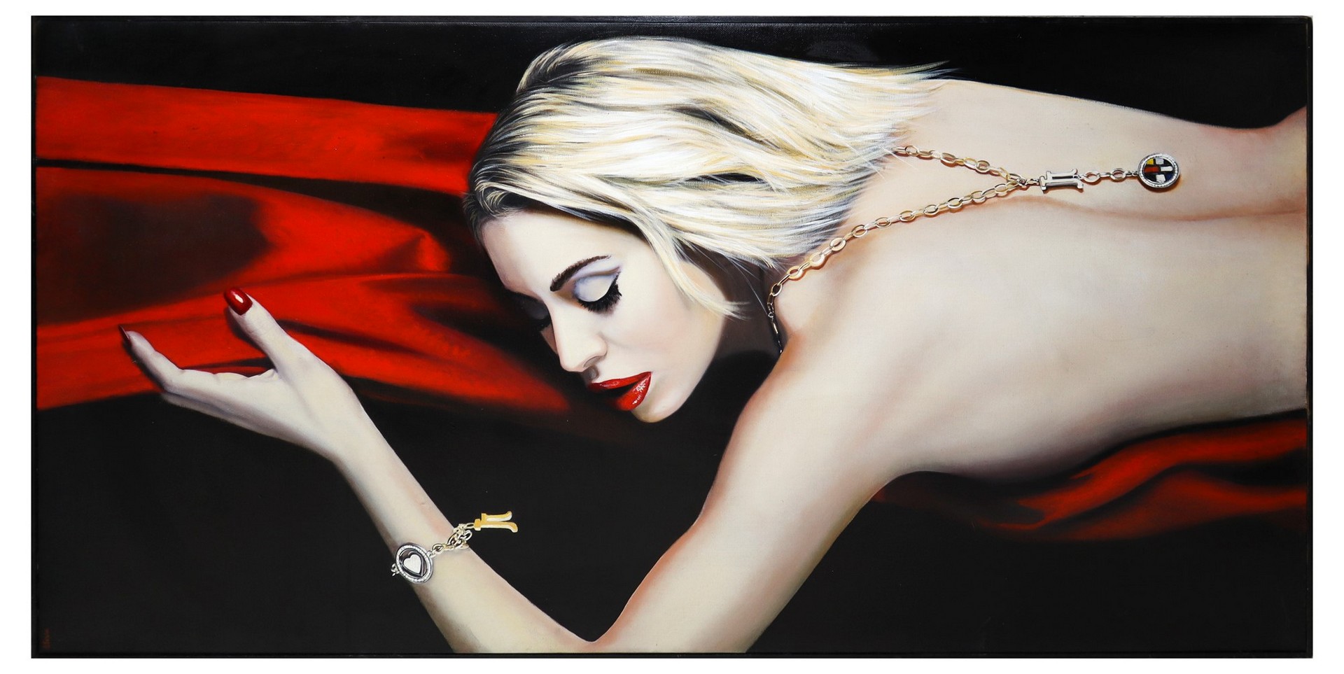 Alessandro Paternò (Catania 1969) - Figura cm 200 x cm 100 olio su tela Dipinto raffigurante giovane donna. Firmato in alto a sinistra e sul retro e titolato. Datato 2003.