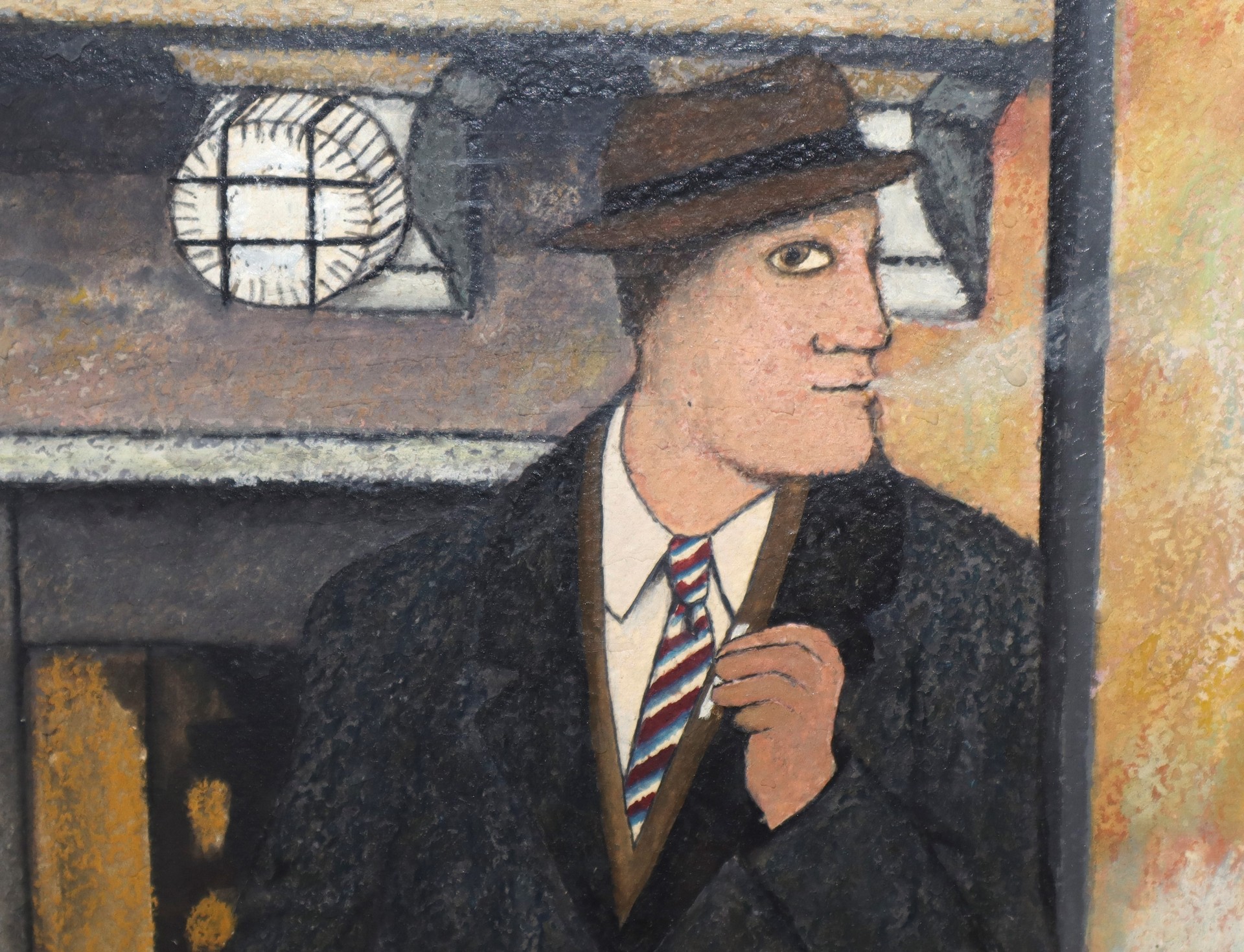 Uomo con cappello appoggiato a una ringhiera Cm h 60 x 45, in cornice cm h 79 x 64 Pastello su cartoncino