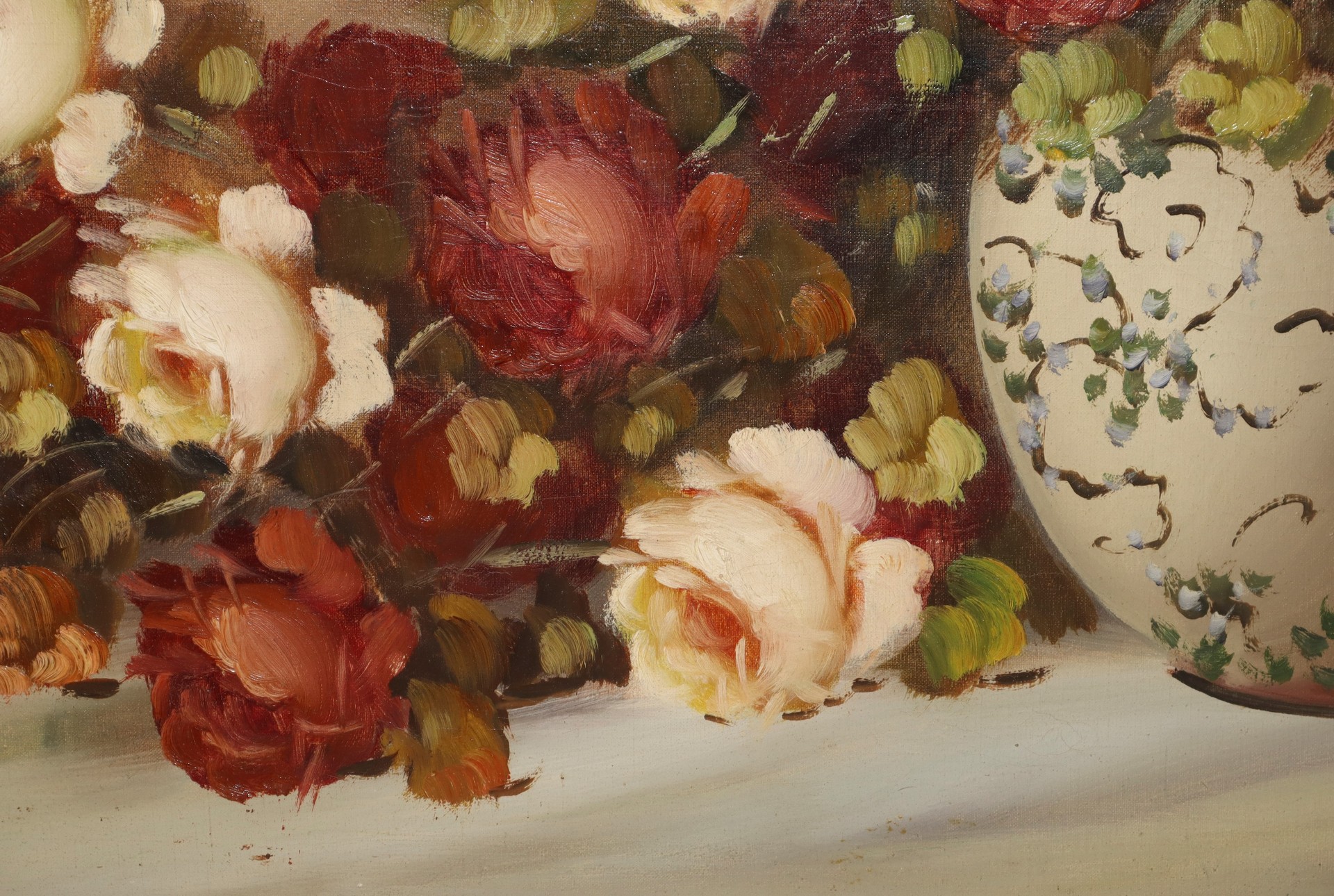 Natura morta di fiori con vaso, Fine 19° secolo H cm 80 x 120 , in cornice h cm 84 x 144 Olio su tela Firmato in basso a destra.