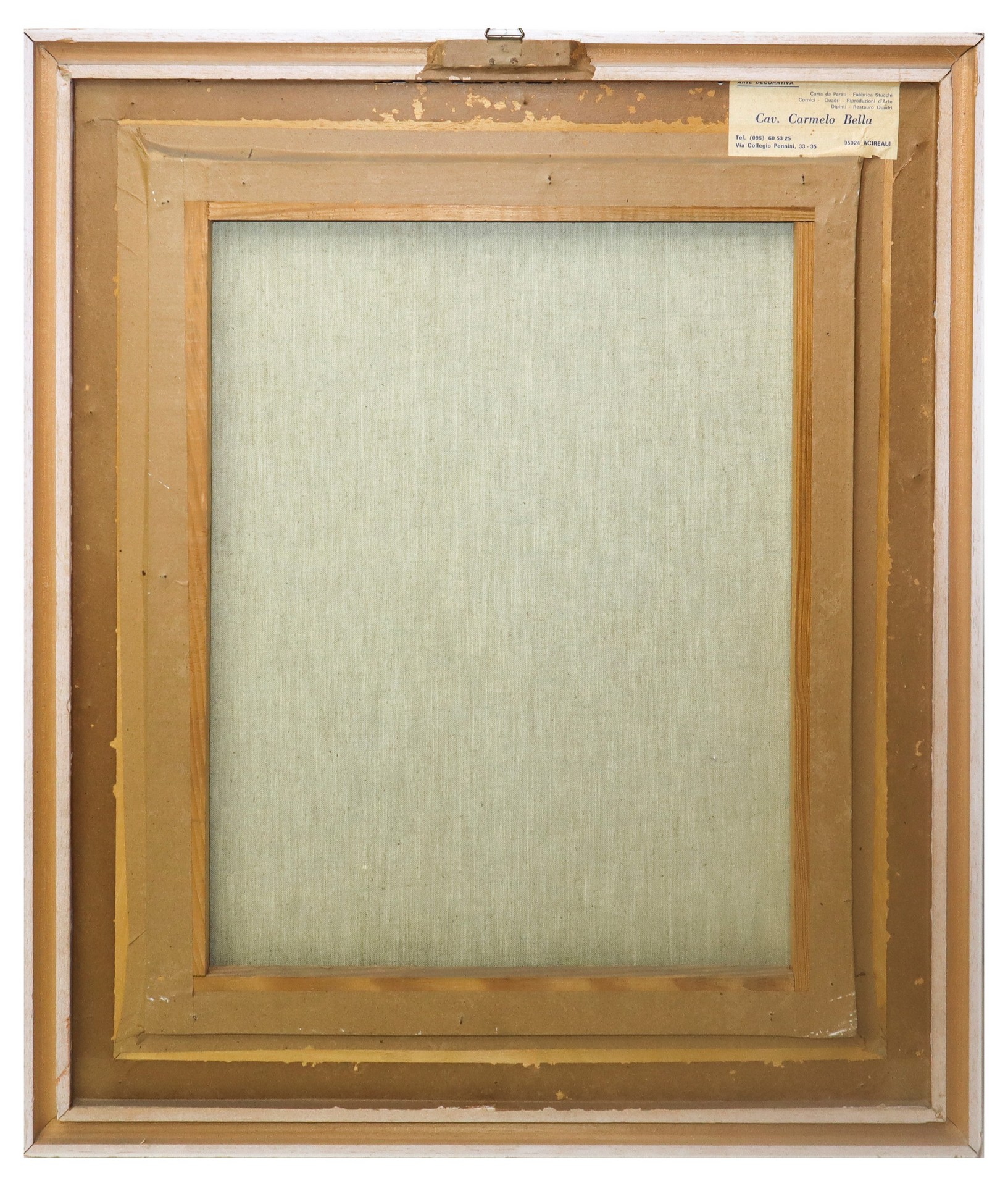 Tetti di case cm 51X41, in cornice 66x56 Tempera su tela Firmato G.Turzin. Sul retro etichetta Cav. Carmelo Bella Acireale.