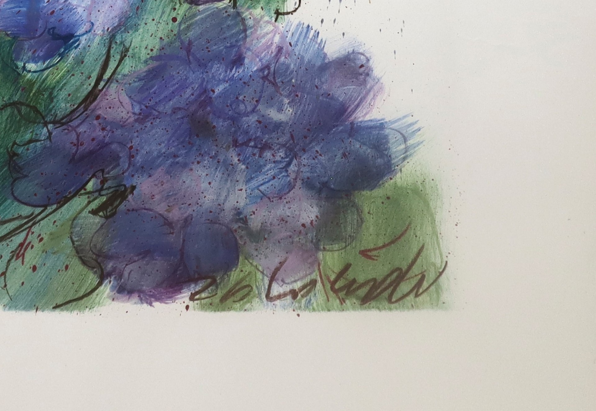 Fiori viola con larghe foglie cm 70x56 Acquerello su cartoncino