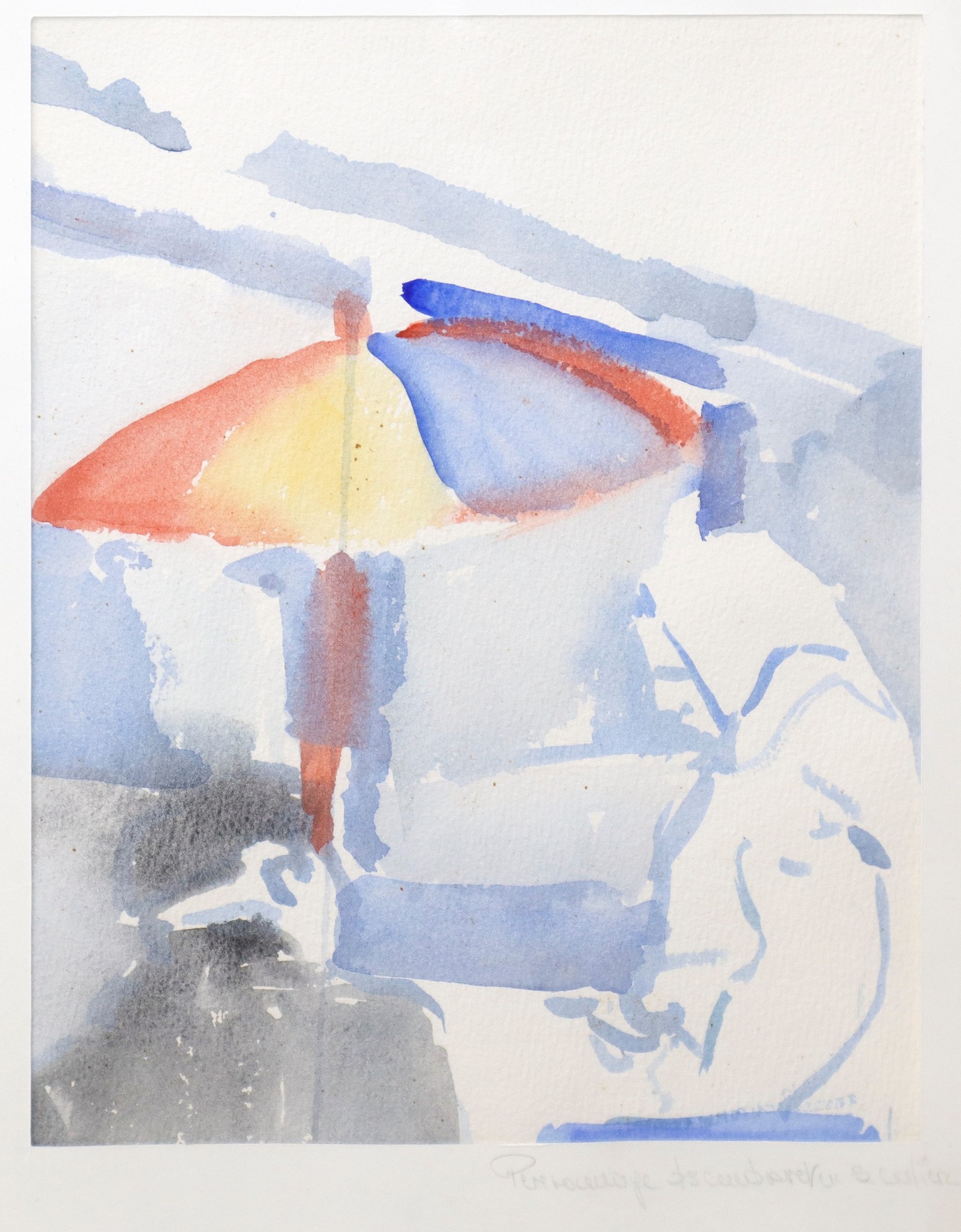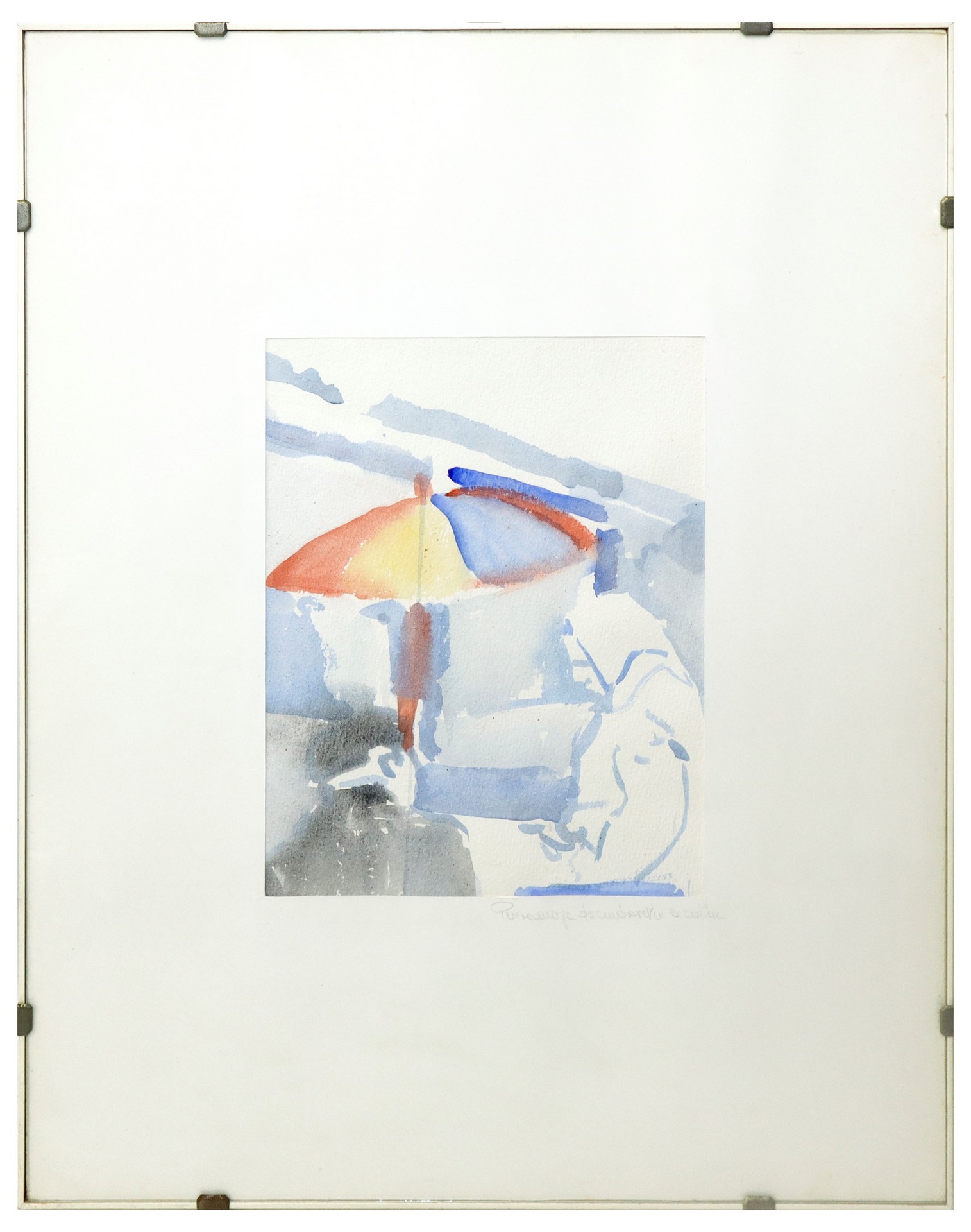 Personaggi e ombrellone cm 31 x 24, in cornice 65 x 50 Acquerello su carta Firmato in basso a destra.