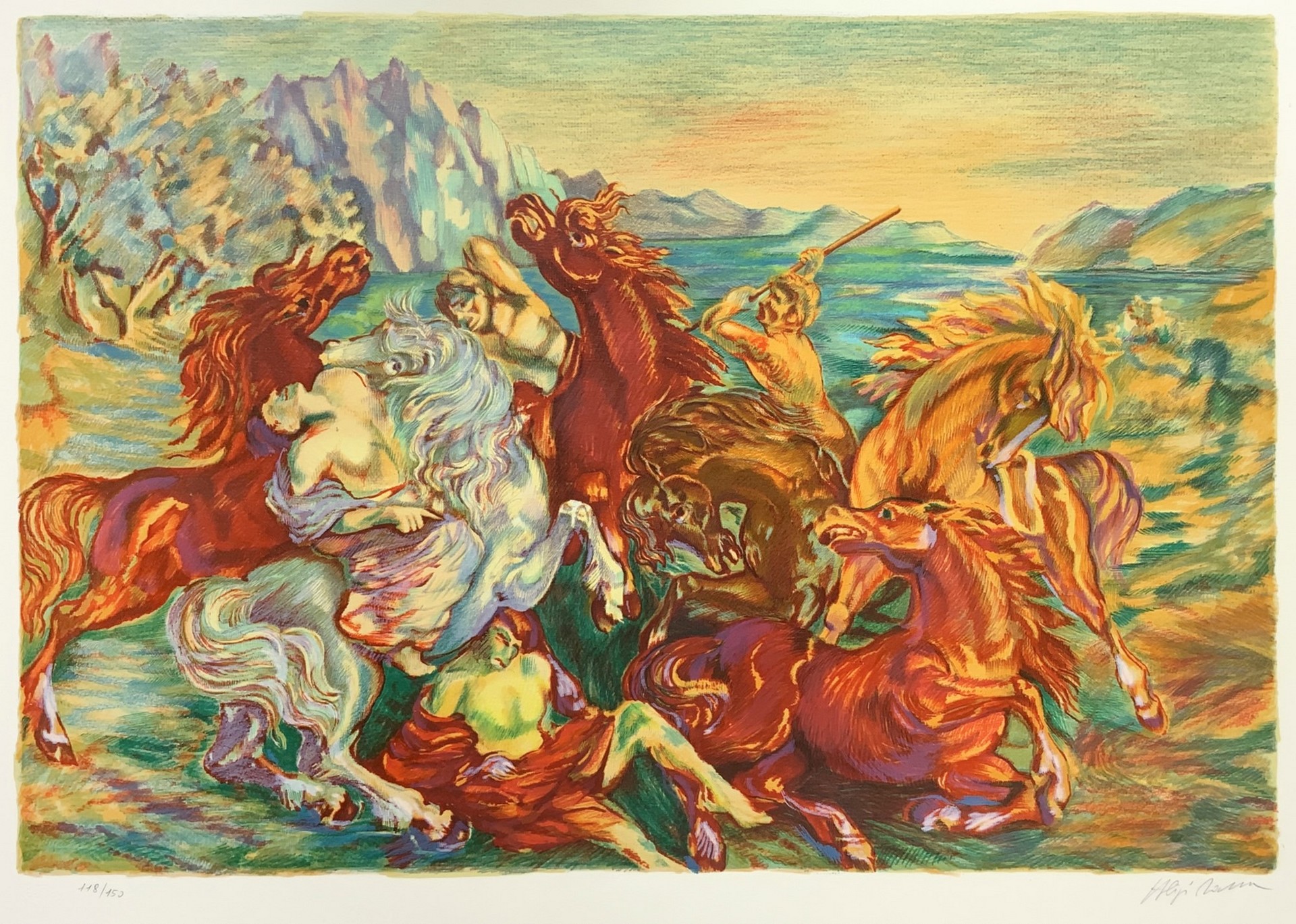 Aligi Sassu (Milano 17/07/1912-Pollença 17/07/2000) - Senza titolo, Screen printing Cm 53x86, in cornice cm 63x85 118/150118/150