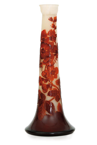 Lot 566 | GALLE' VASO IN VETRO DOPPIO, GALLE', 1900 CA., troncoconico, decoro ad...