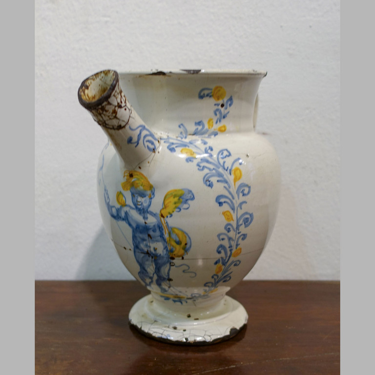 Versatoio in ceramica decorato con angelo su fondo bianco Centro Italia sec.XVIII