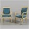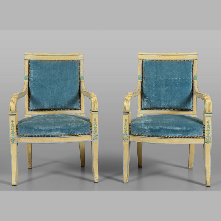 Coppia di poltroncine Direttorio in legno laccato azzurro e crema I metà sec.XIX