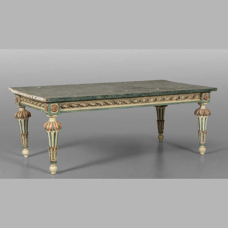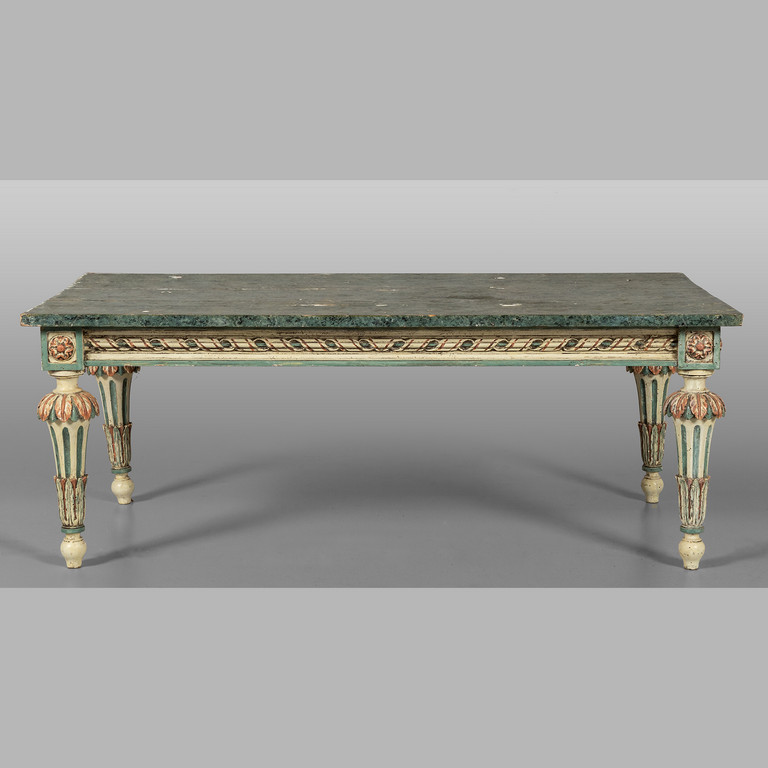 Tavolino da sofà in stile Luigi XVI in legno laccato in policromia