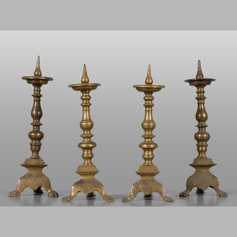 Due coppie di candelieri in bronzo a patina scura Toscana sec.XVII