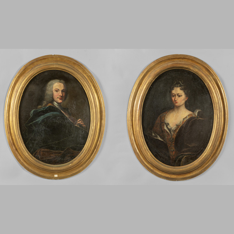 'Ritratti' coppia di olii di forma ovale sec.XVIII cornici coeve in legno intagliato e dorato