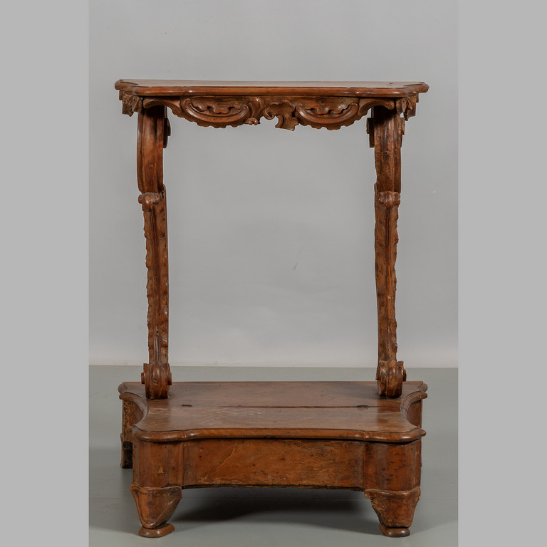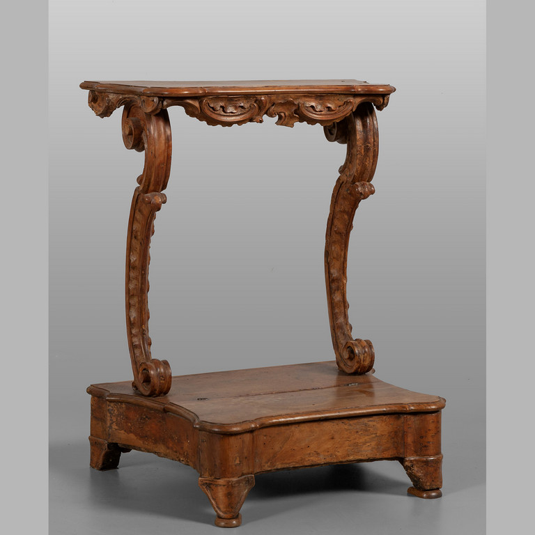 Inginocchiatoio Luigi XIV a giorno in noce scolpito nella parte inferiore pianetto ribaltabile Genova sec.XVIII