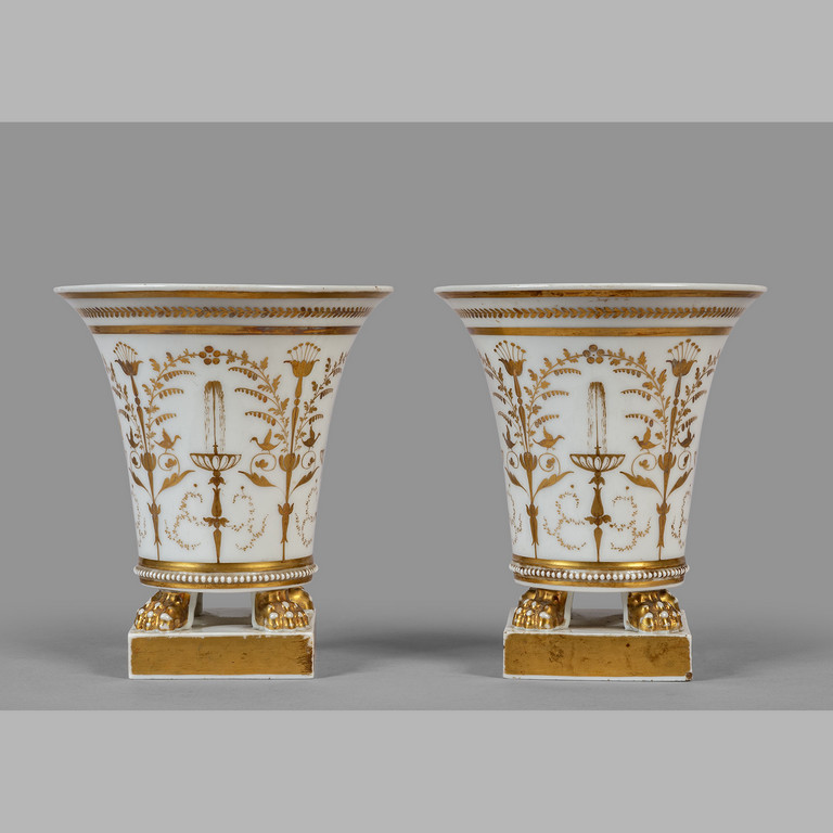 Coppia di vasi in porcellana decorati in oro su fondo bianco Francia sec.XIX