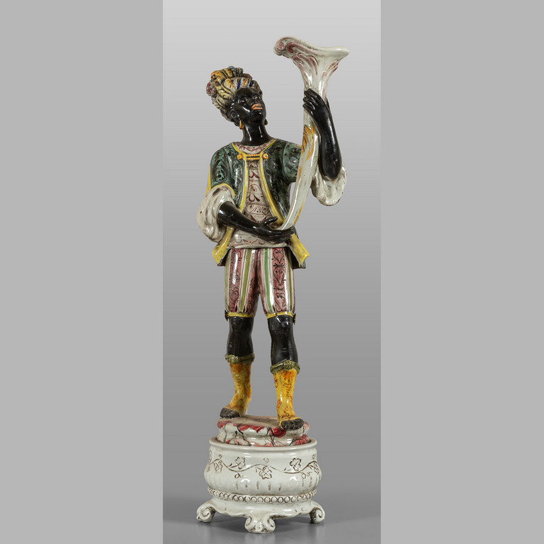 Previous Lot 0516 Next Aste Boetto - Via Mura dello Zerbino 10R, 16122 Genova Asta di Antiquariato Asta di Antiquariato Wednesday 6 December 2023 hours 10:30 (UTC +01:00) OGGETTISTICA Moretto portacero in ceramica policromah.cm.110