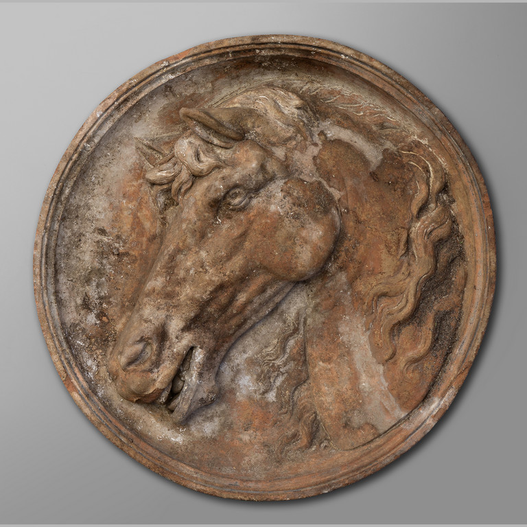 Tondo in terracotta ad altorilievo raffigurante una testa di cavallo
