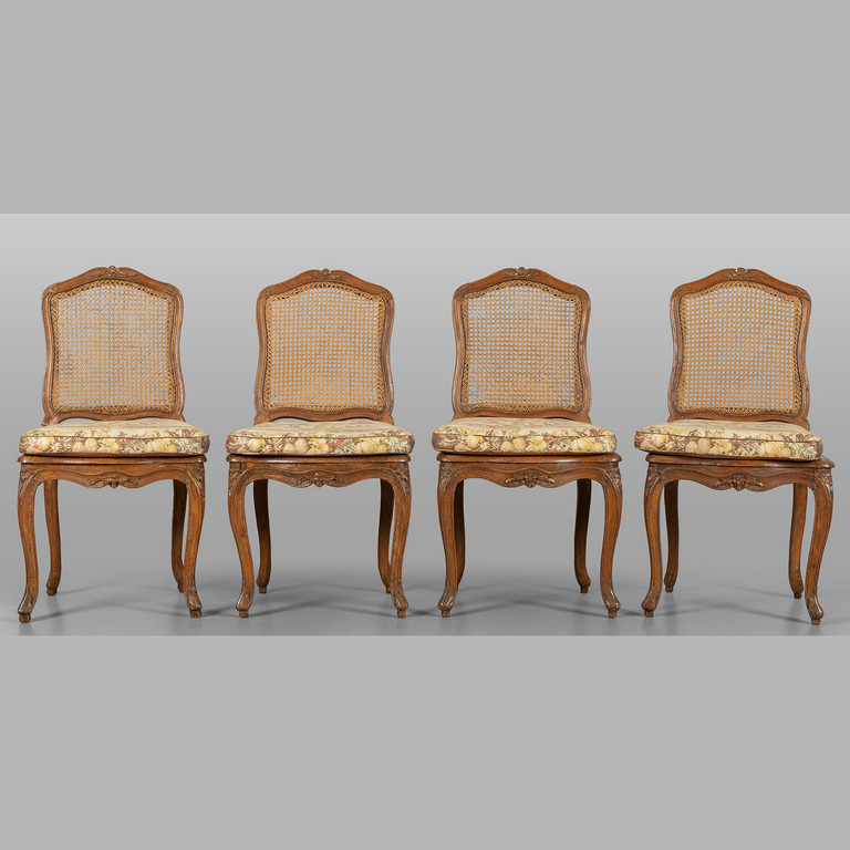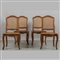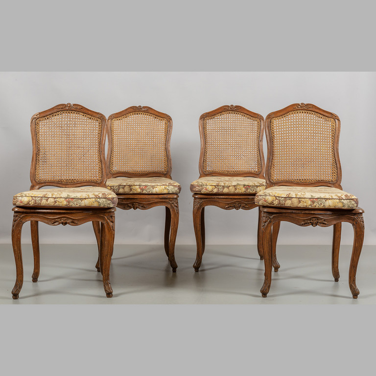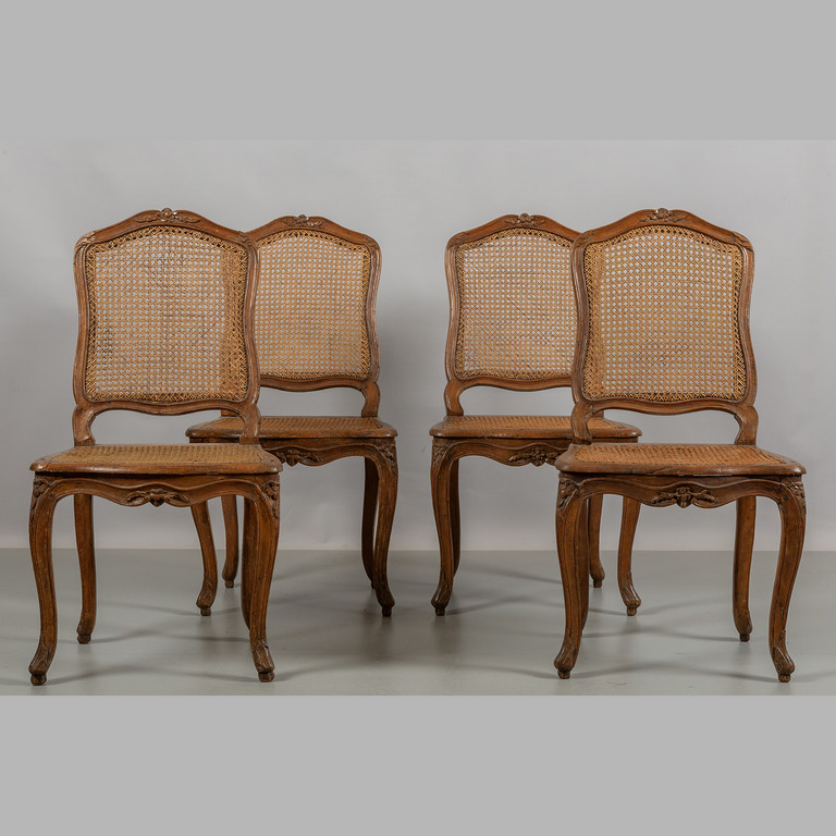 Quattro sedie Luigi XV in noce con intagli sedile e seduta con cannè Genova sec.XVIII