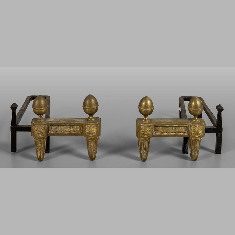 Coppia di alari Luigi XVI in bronzo dorato Francia II metà sec.XVIII