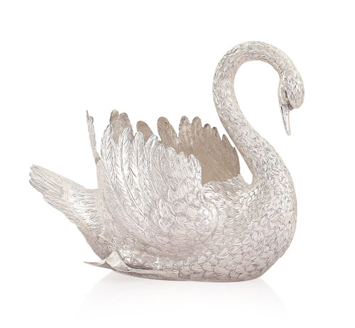 FIORIERA-CENTROTAVOLA IN ARGENTO, GERMANIA, XX SECOLO, a forma di cigno; restauro ad un'ala.