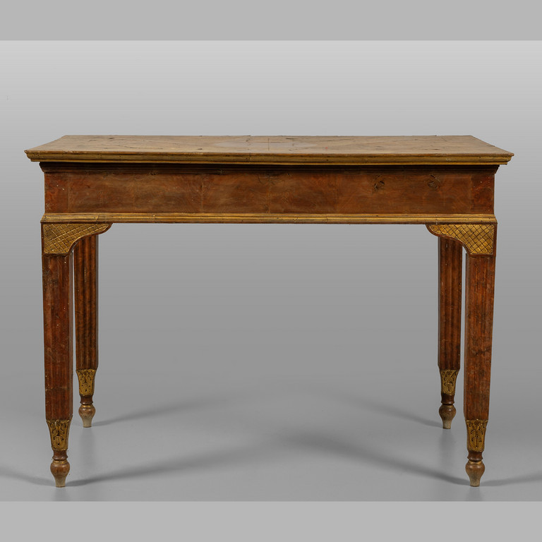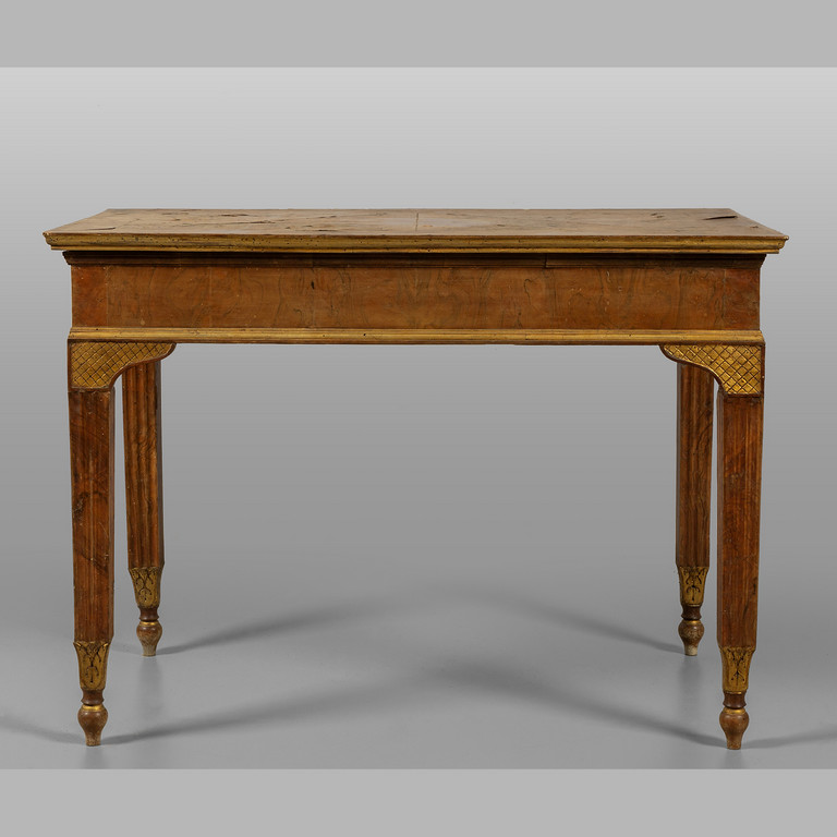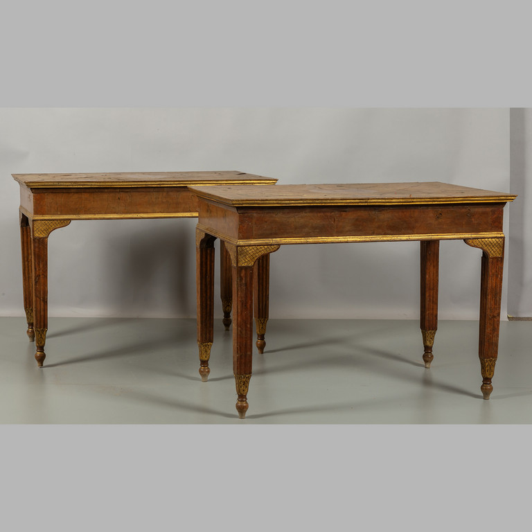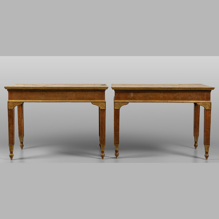 Coppia di consoles Luigi XVI lastronate in noce e radica di noce fine sec.XVIII