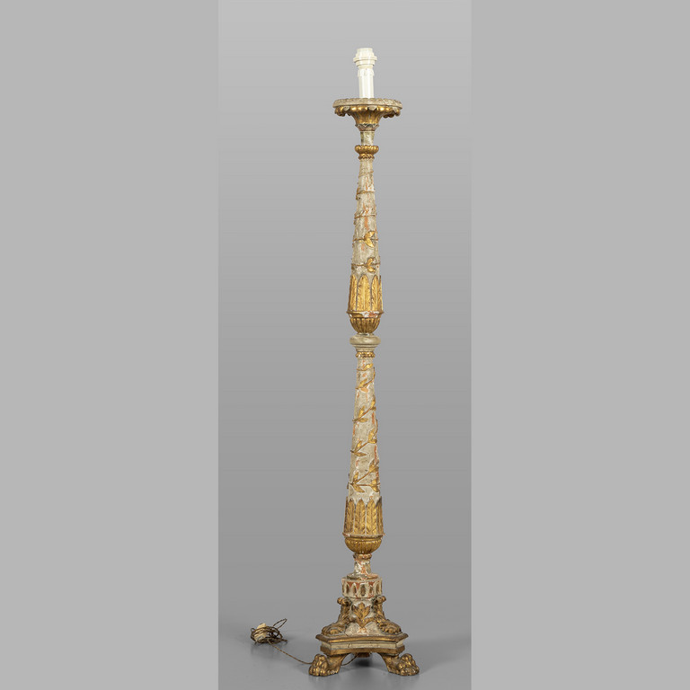 Piantana Luigi XVI in legno intagliato laccato e dorato fine sec.XVIII