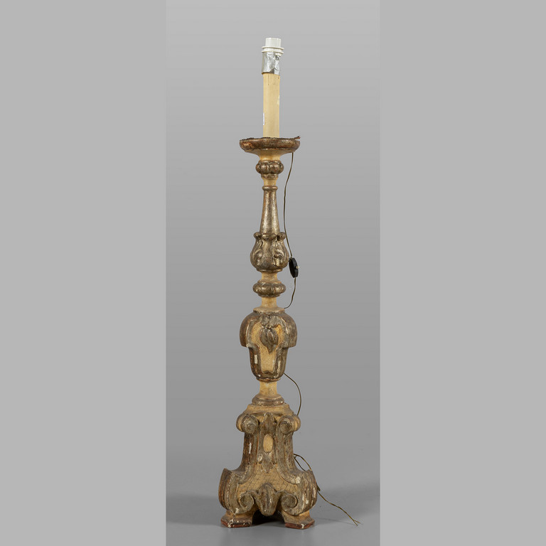 Candeliere Luigi XIV finemente intagliato e laccato montato a lampada sec.XVIII