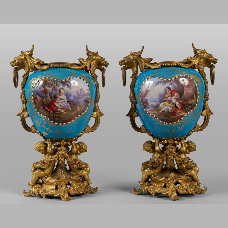 Coppia di vasi Napoleone III in porcellana e bronzo dorato Francia sec.XIX