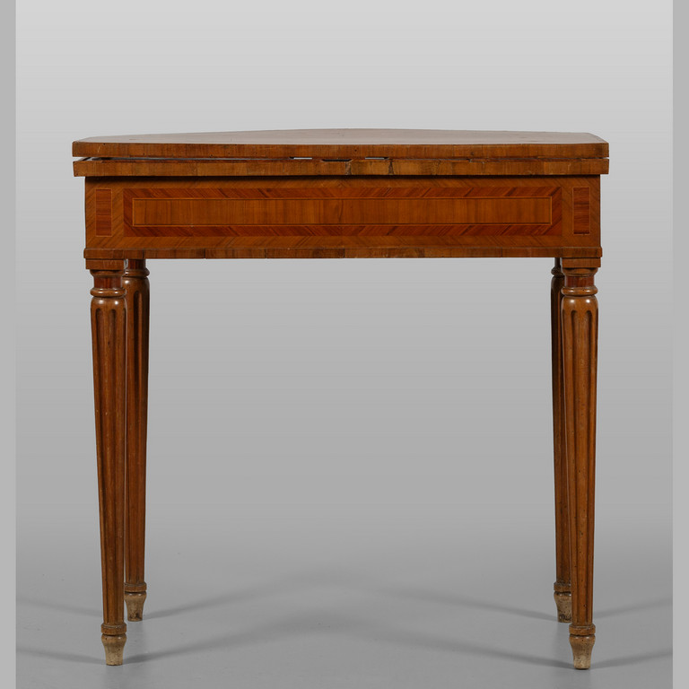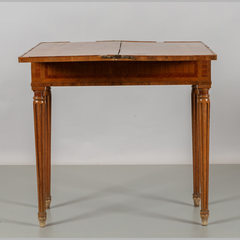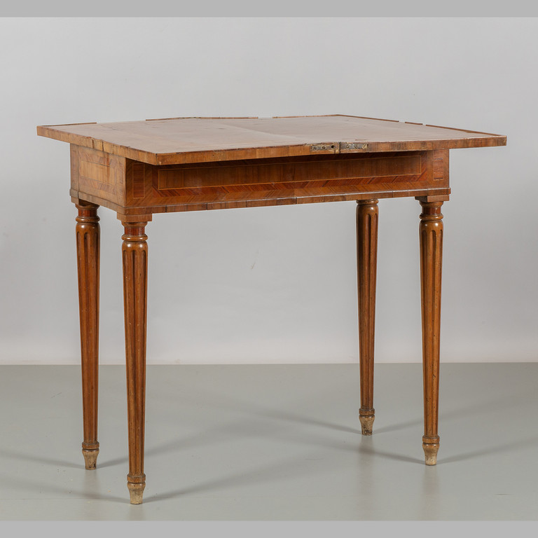 Tavolo da gioco Luigi XVI lastronato e filettato in legni vari Piacenza II metà sec.XVIII