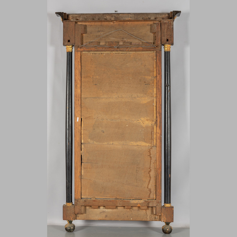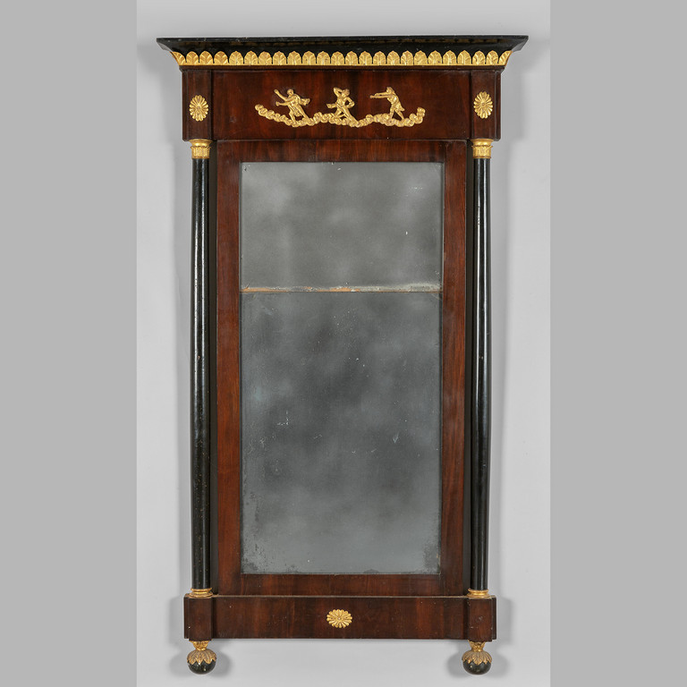 Grande specchiera Impero lastronata in mogano con ricca decorazione in legno dorato Francia sec.XIX