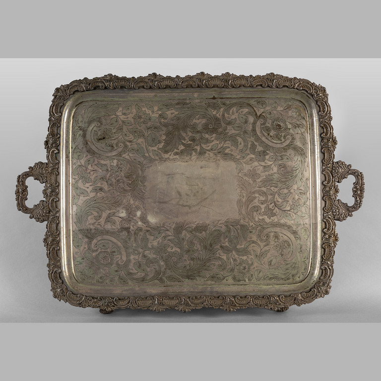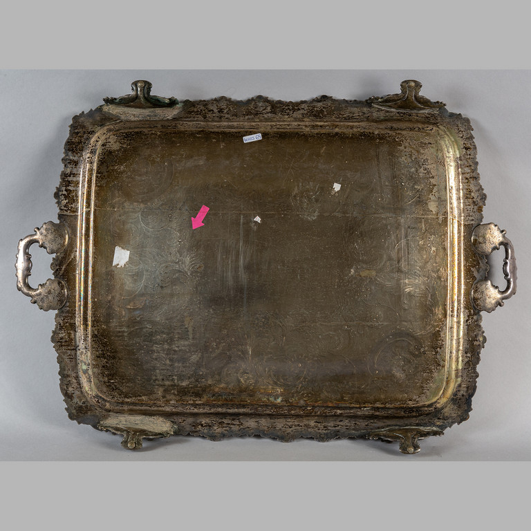 Previous Lot 0768 Next Aste Boetto - Via Mura dello Zerbino 10R, 16122 Genova Asta di Antiquariato Asta di Antiquariato Wednesday 6 December 2023 hours 10:30 (UTC +01:00) OGGETTISTICA Grande vassoio in metallo argentato con manici e piedinicm.89x60