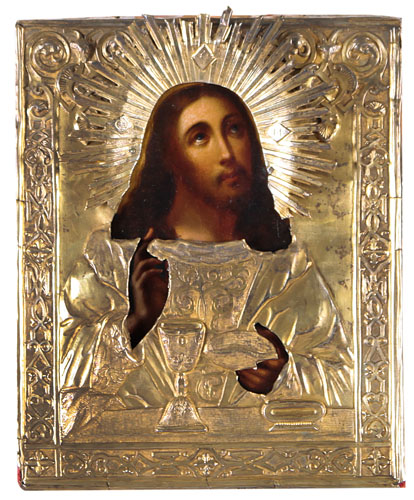 ICONA RUSSA DEL XIX SECOLO Cristo EucaristicoTempera all'uovo su tavola con...