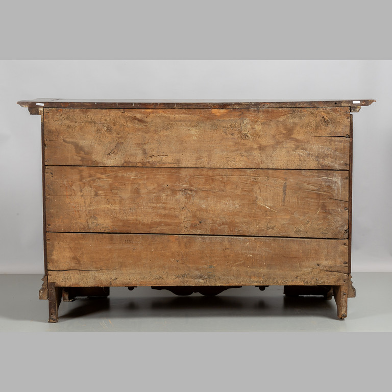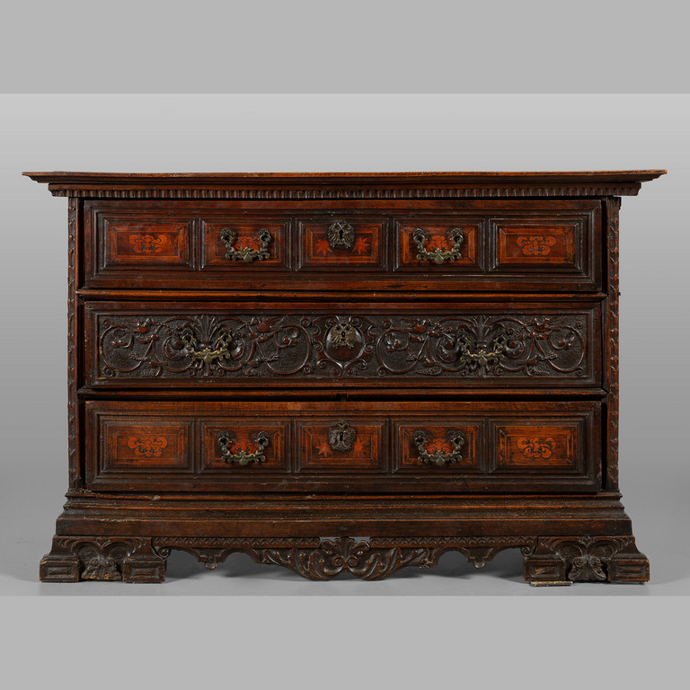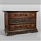 Canterano in noce a tre cassetti di cui il centrale intagliato e gli altri con formelle intarsiate Bergamo sec.XVIII